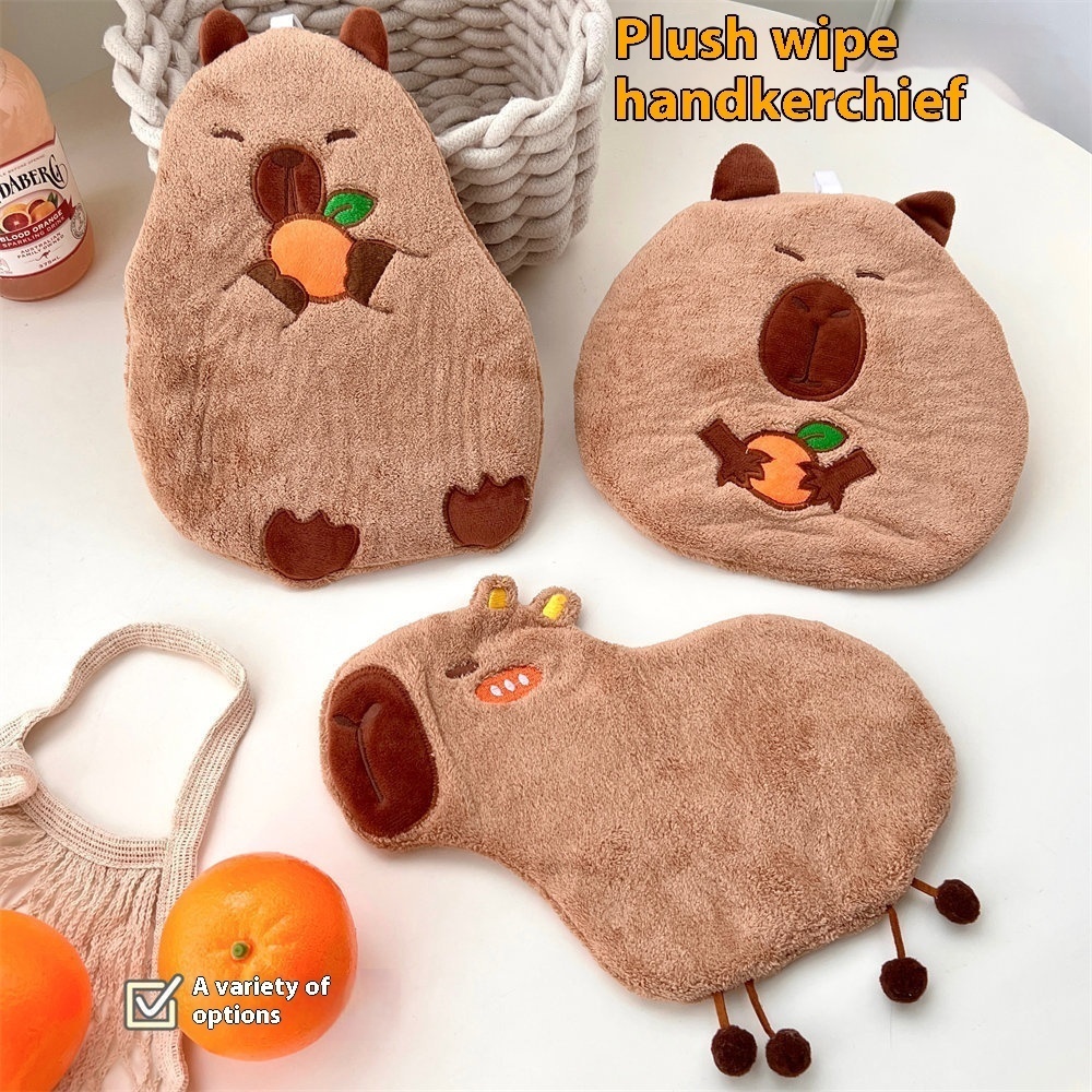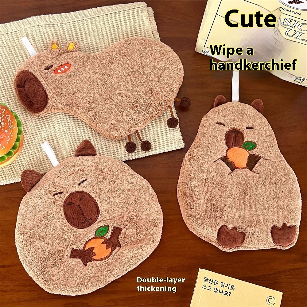Cute Capybara Hand Towel Fun Coral Fleece Absorbent Quick-drying Hanging Kitchen Household Children's Face Wash Small Square Towel