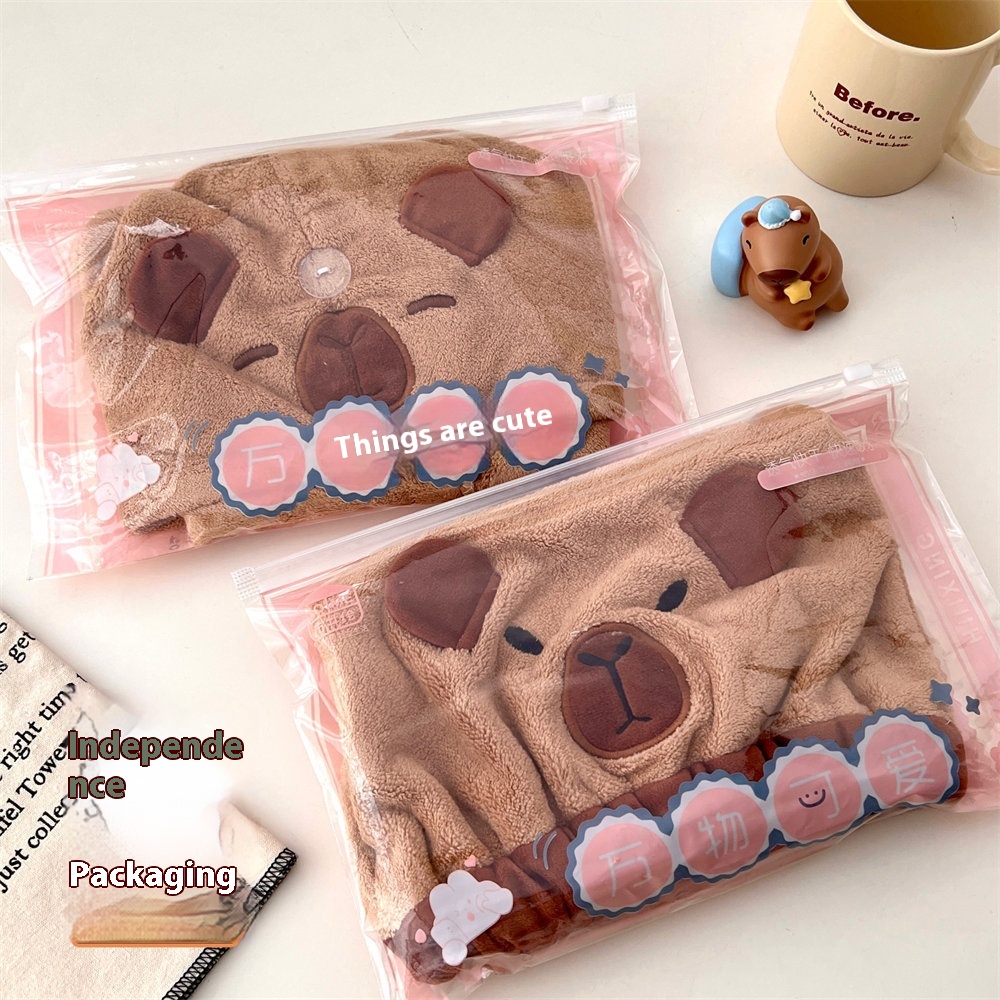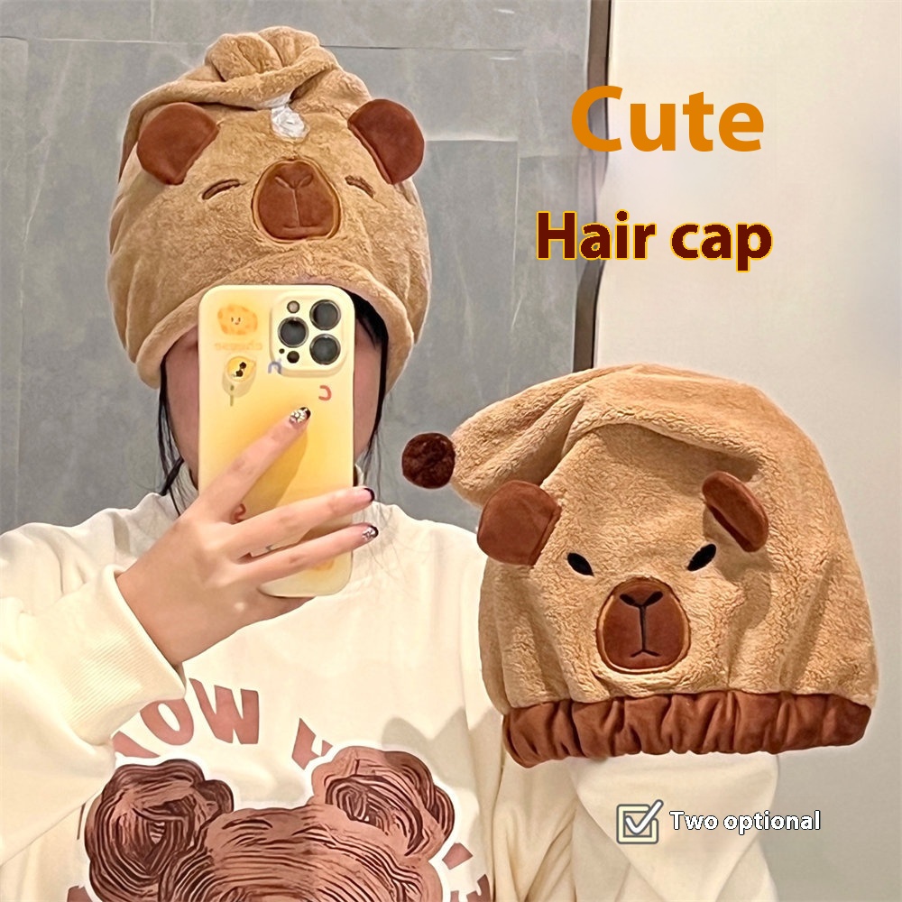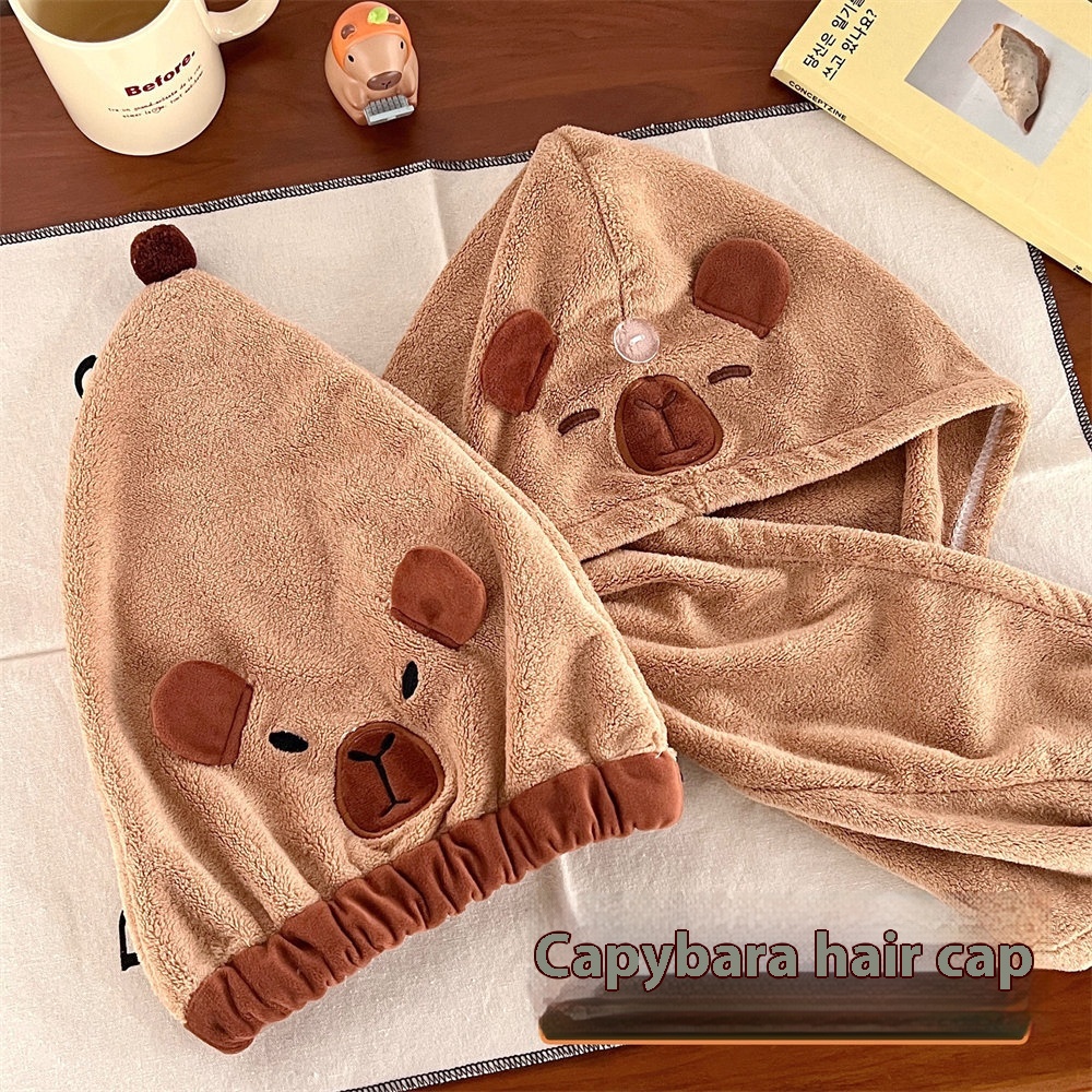 Cute Cartoon Capybara Hair Dryer Cap Coral Fleece Absorbent Quick-drying Shower Cap Soft Wiping Head Shampooing Headband Girl Dry