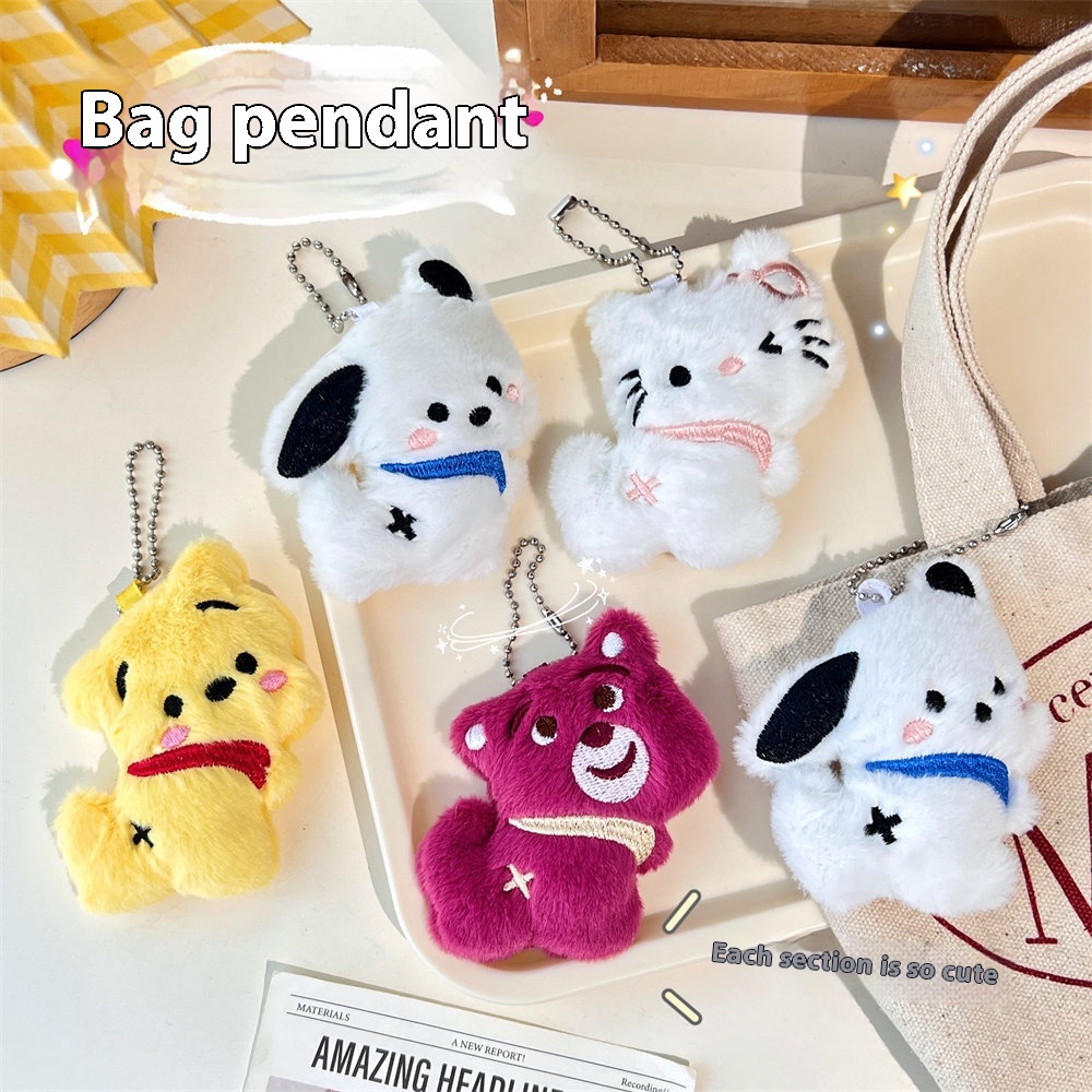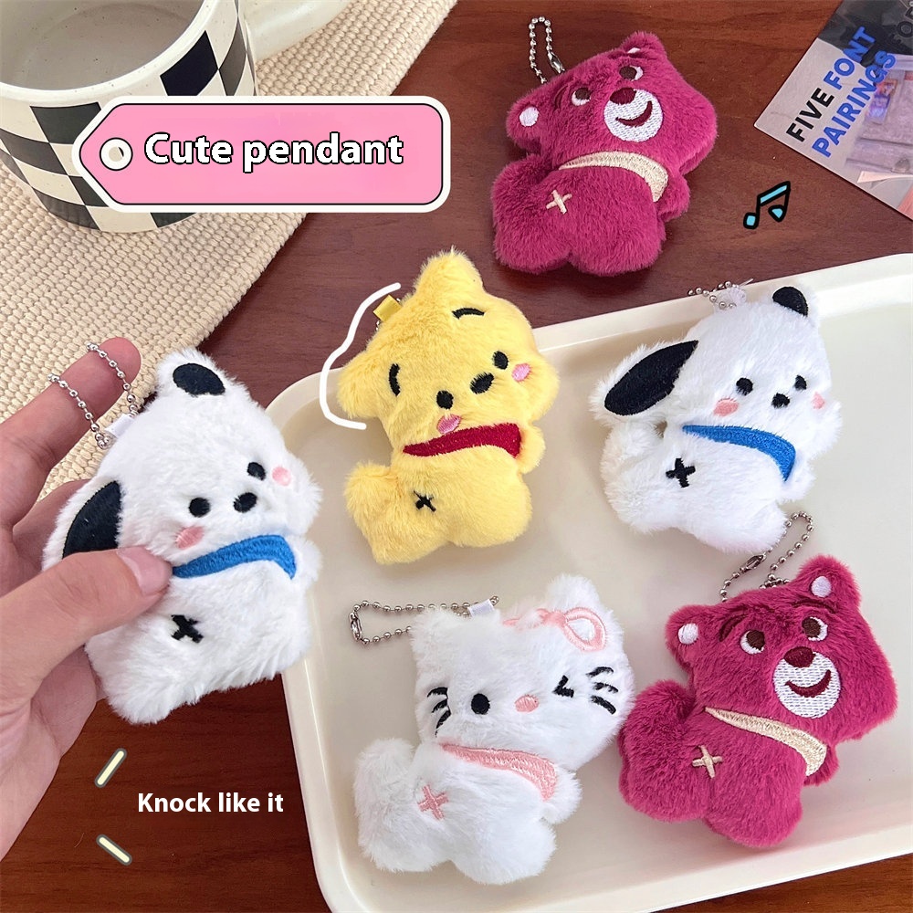 Cute Cartoon Plush Bear Puppy Keychain Pendant Girly Decoration Doll Bag Pendant