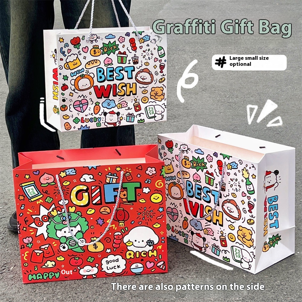 Tengyi Co-branded Original Dragon Year Graffiti Gift Bag Cute Cartoon Handbag Creative Year Shopping Bag
