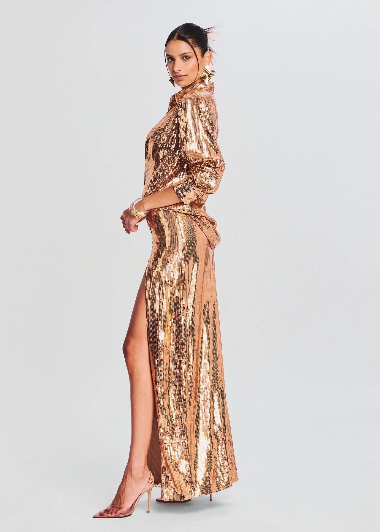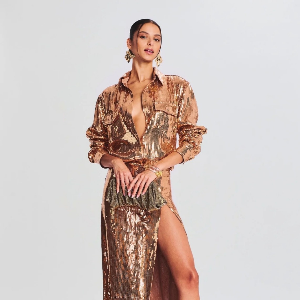 Foreign Trade High-end European And American Women's Fashion Sexy Sequin Skirt Suit Chest Wrap Small Vest Hip Long Skirt Two-piece Suit