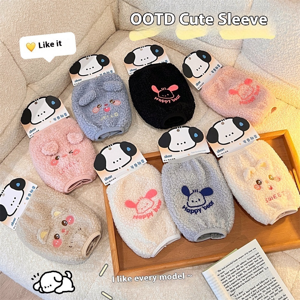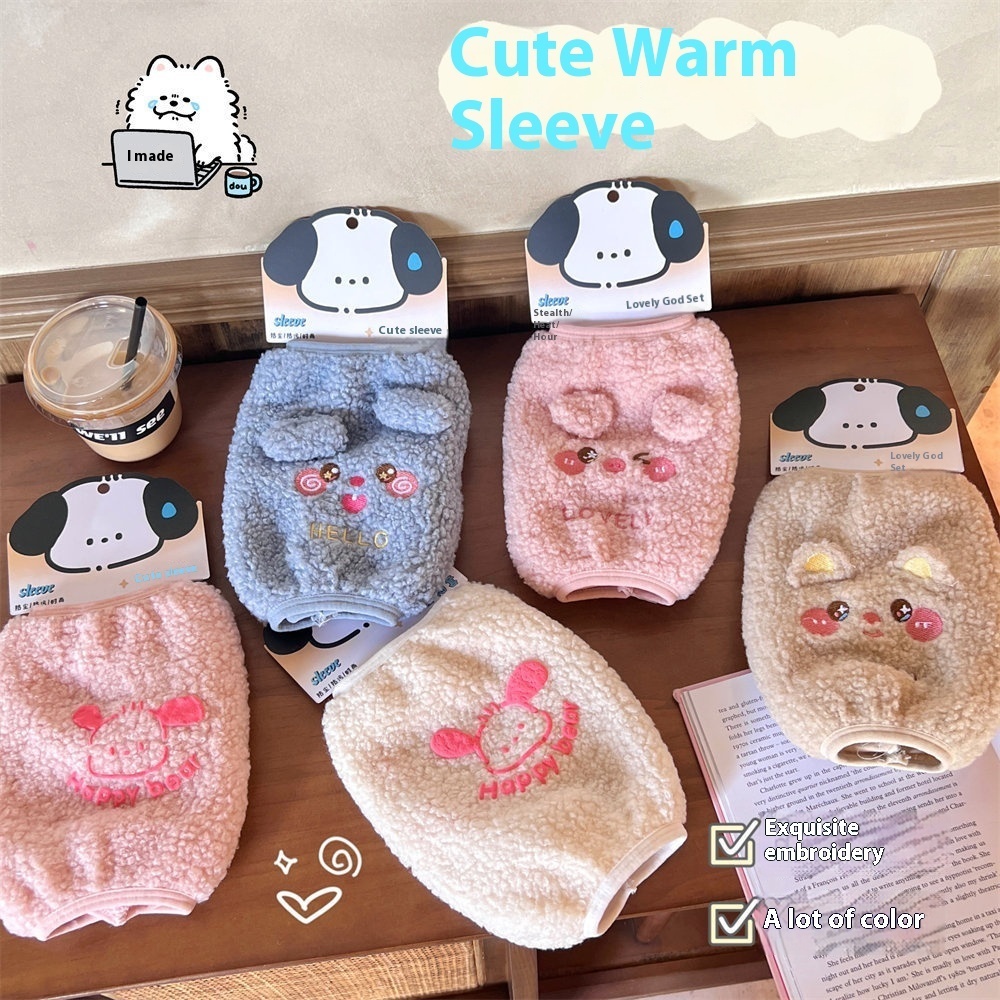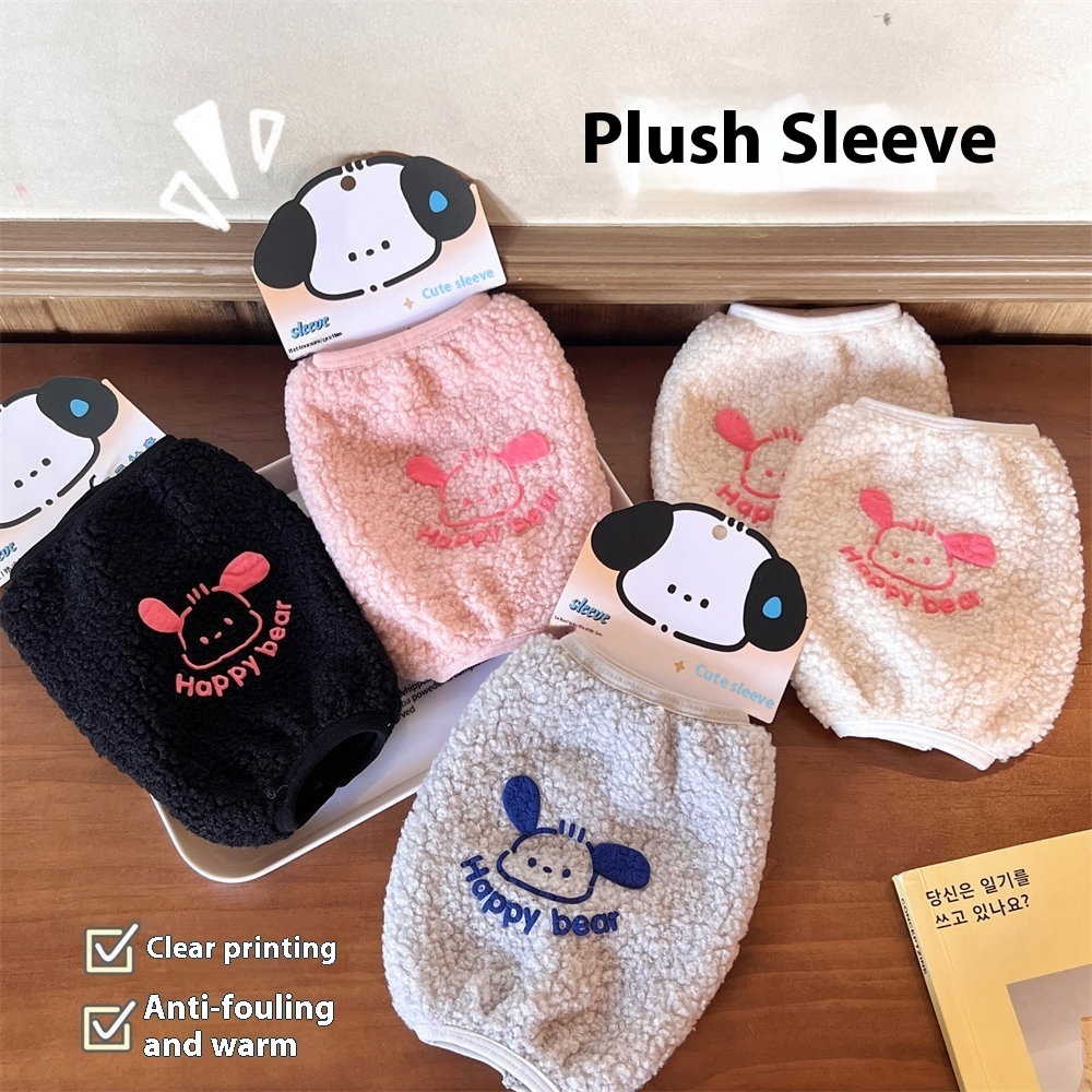 Creative Cartoon Cute Puppy Sleeves Teddy Velvet Embroidery Pattern Anti-fouling Sleeves Autumn And Winter Children's Anti-dirty Sleeves
