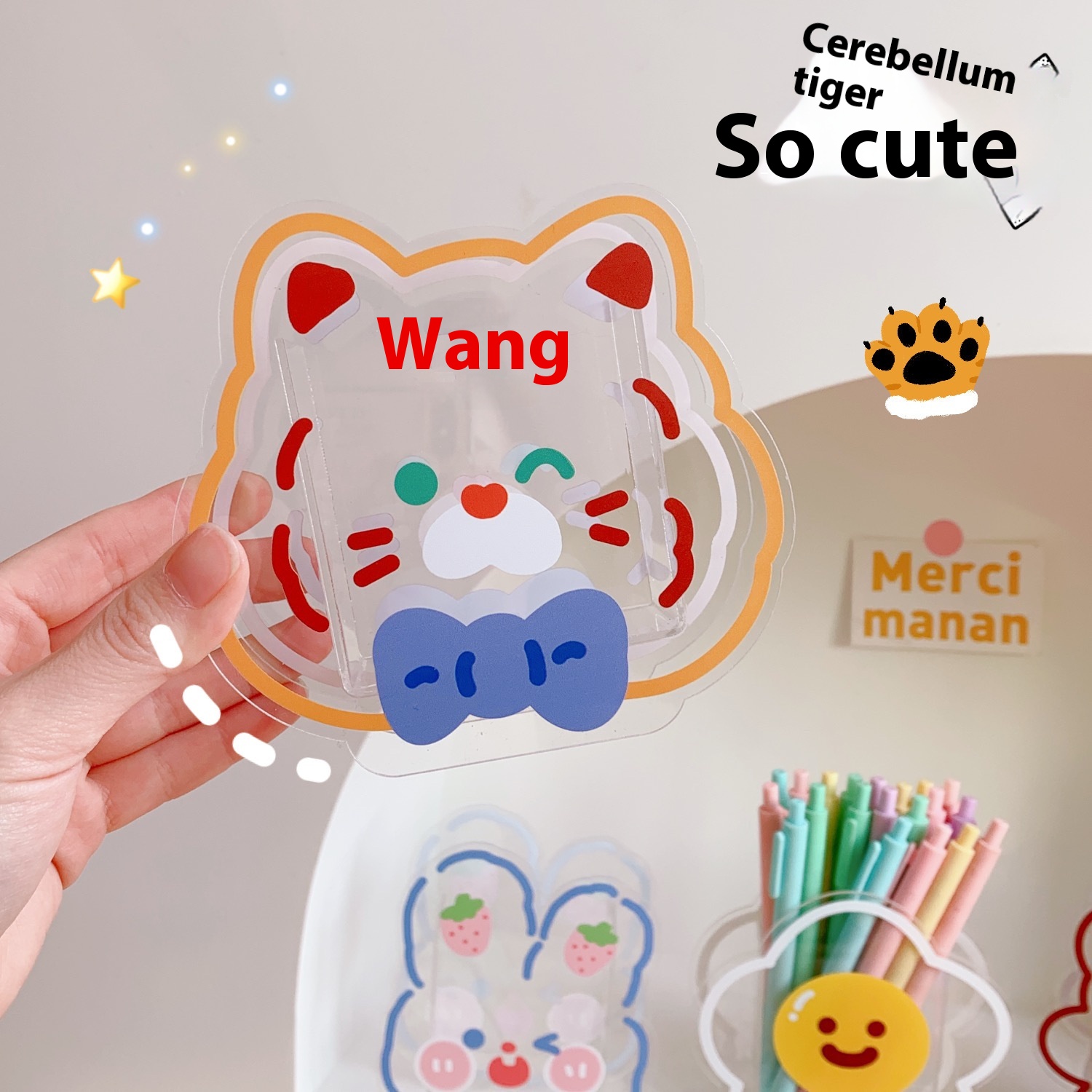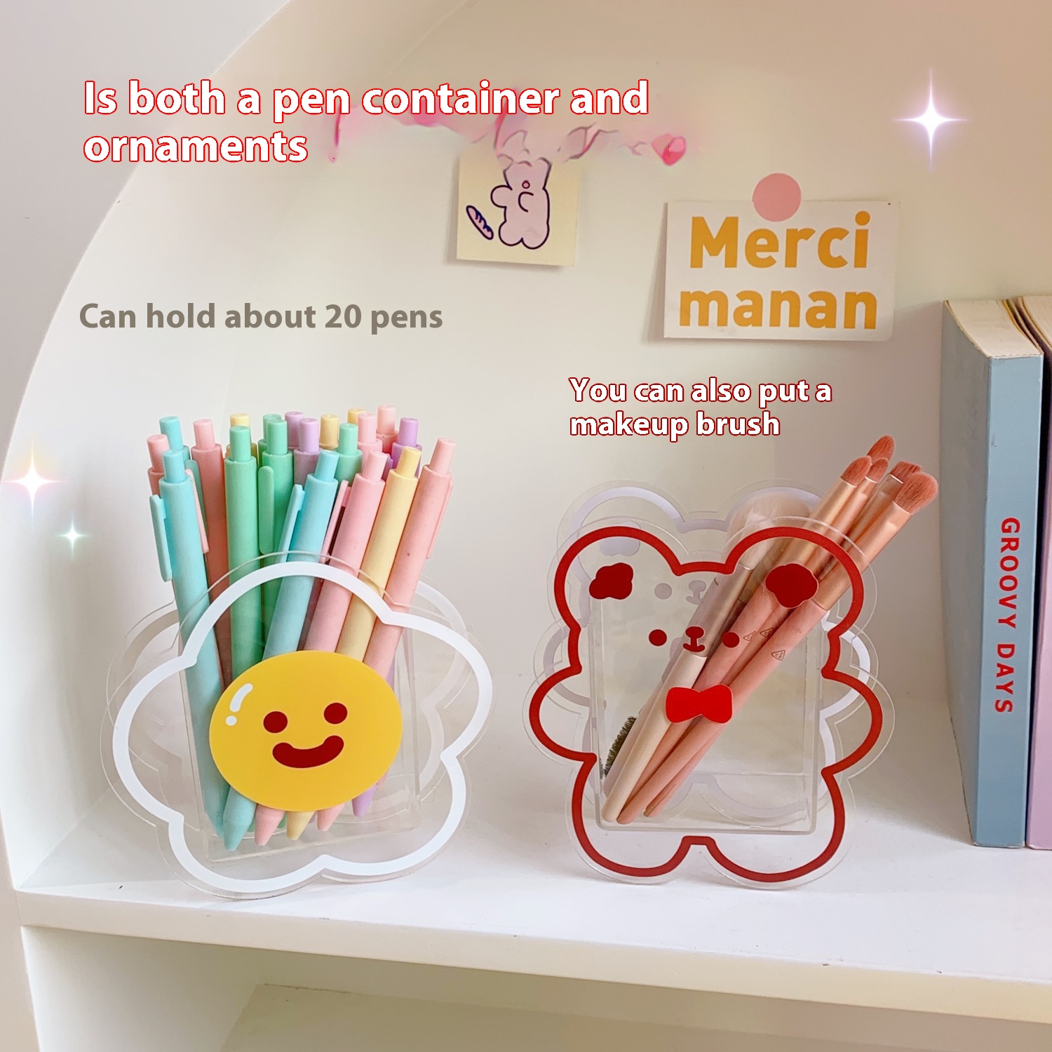 Pen Holder For Girls Style Creative Acrylic Girls Cute Desktop Ornaments Transparent Student Stationery Pen Holder Storage Box