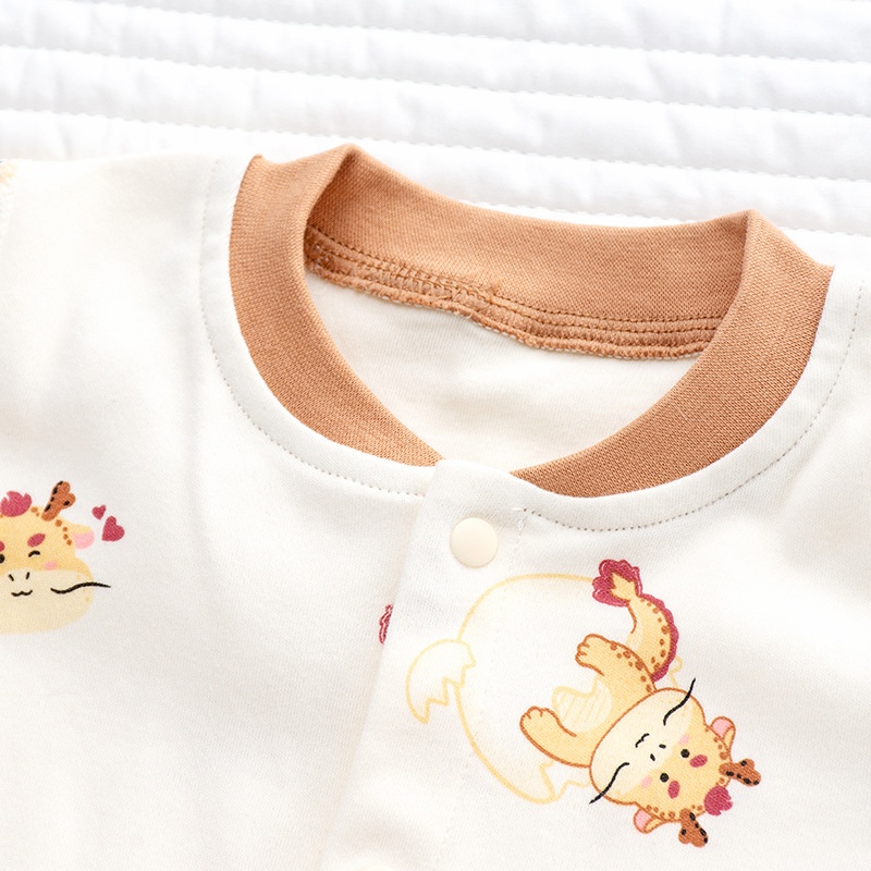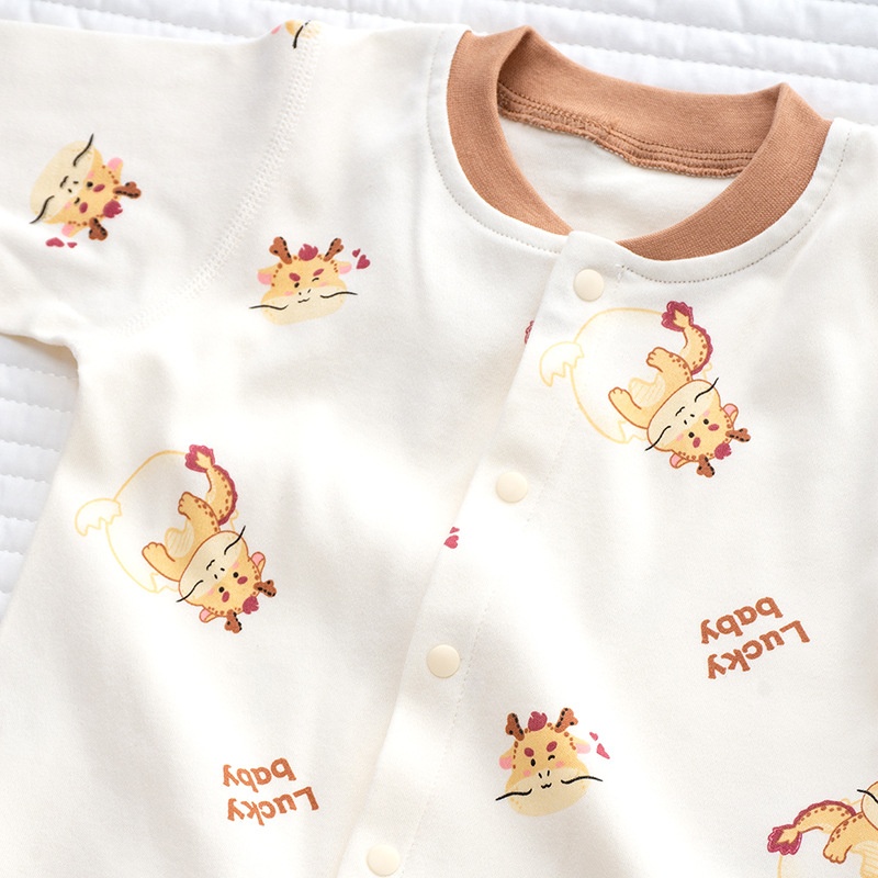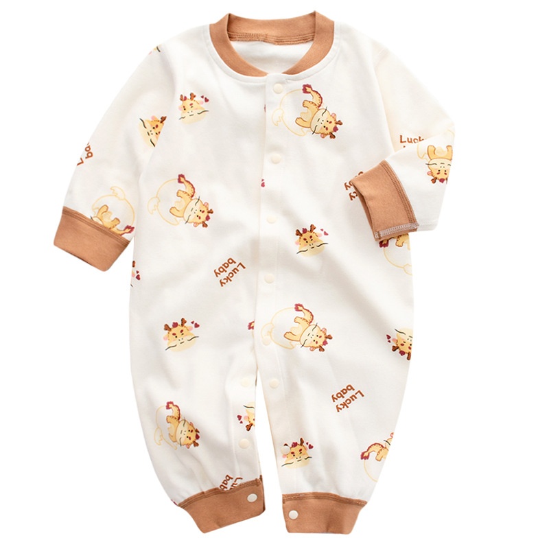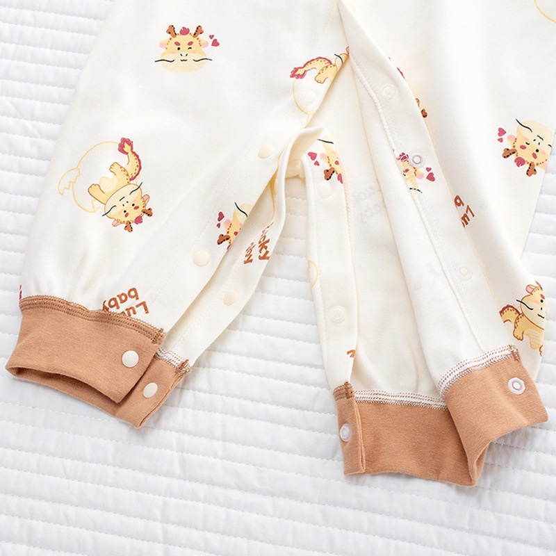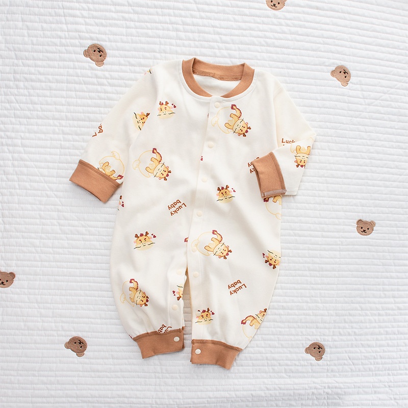 Baby Jumpsuit Spring Maillard Style Pure Cotton Romper Boneless Long Sleeveborn Baby Climbing Clothes Dragon