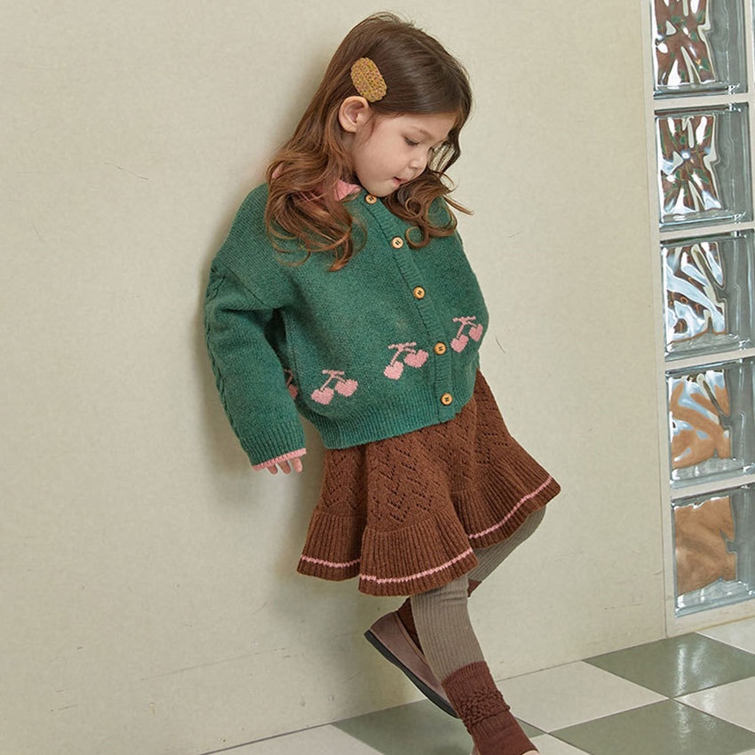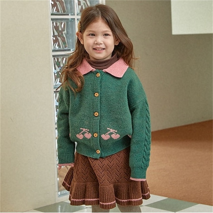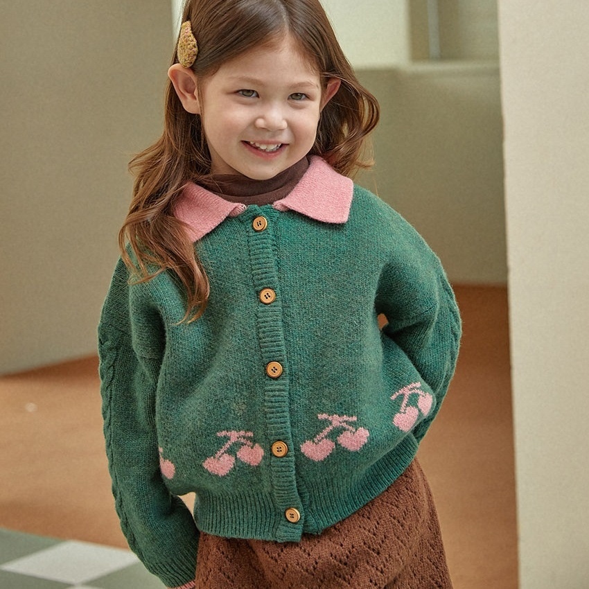 In Stock!Ruijier Winter Girls Baby Korean Cherry Sweater Jacket Cardigan Children's Year Knitted Sweater