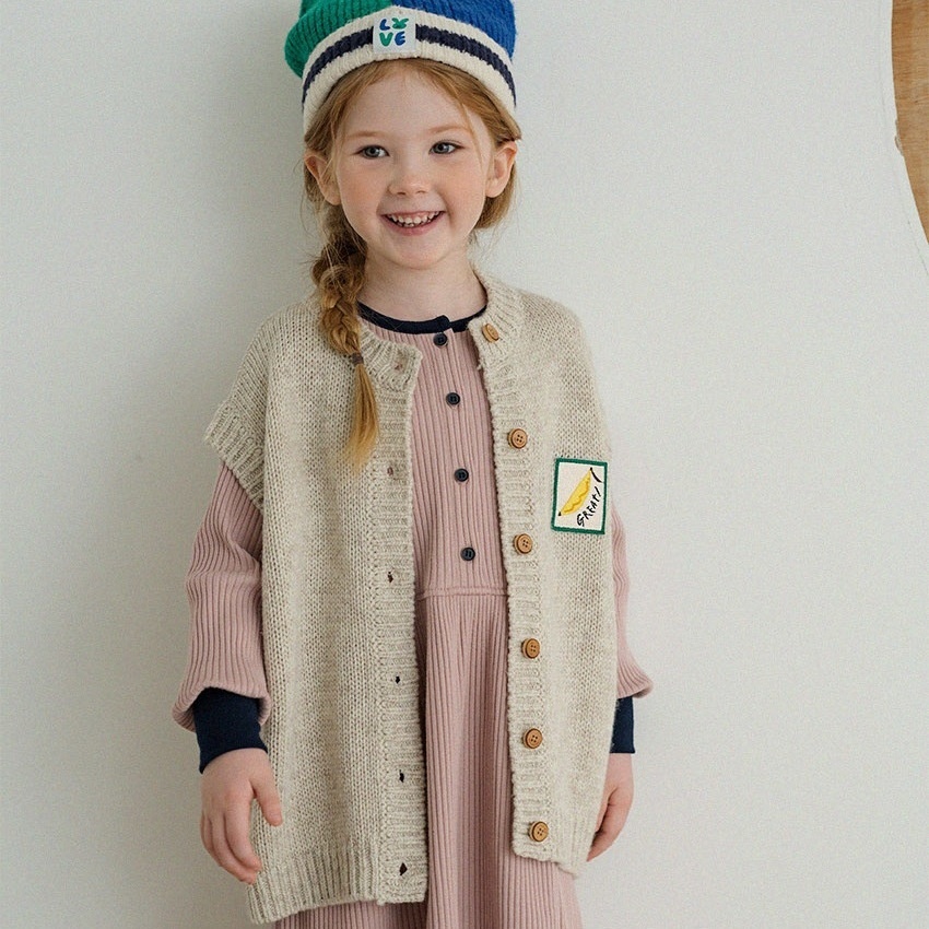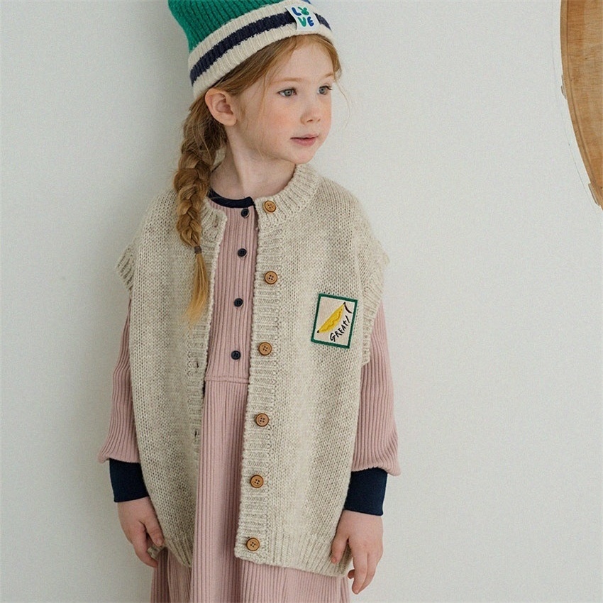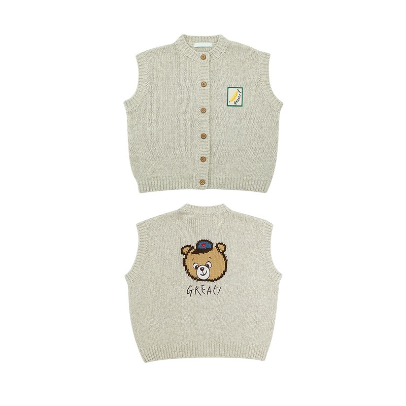 In Stock!Children's Autumn And Winter Knitted Vest Korean Version Baby Cute Bear Cardigan Jacket Girls Sweater Autumn