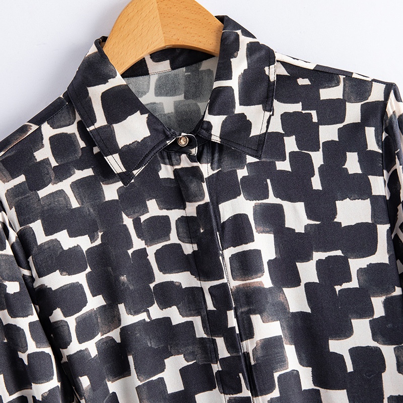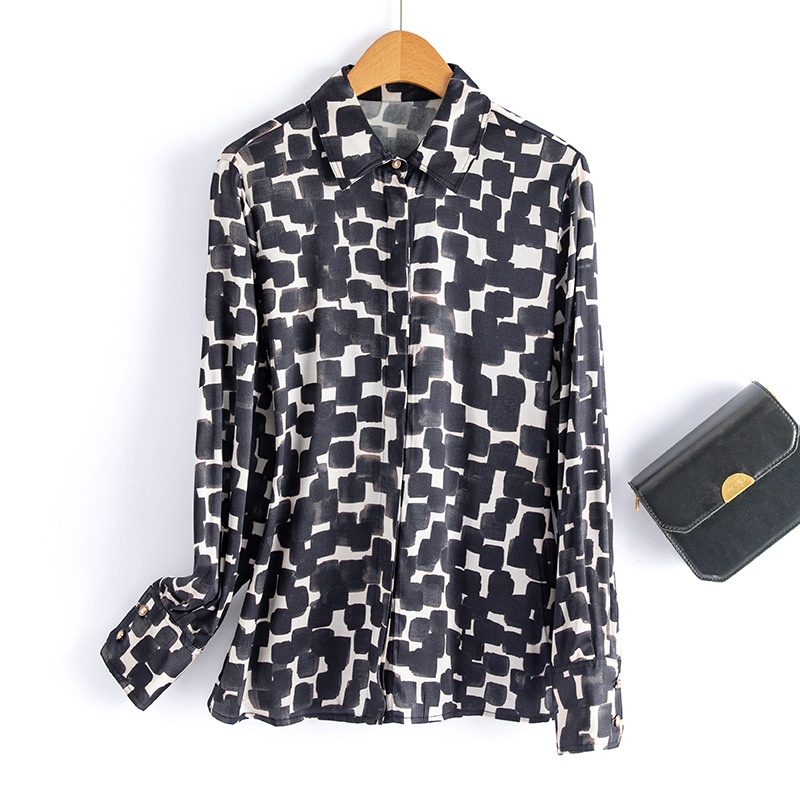 Silk Shirt Women's Spring Women's Clothing Products Heavy19 Momme Stretch Satin Printed Versatile Mulberry Silk Shirt