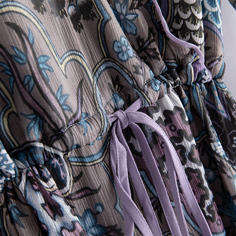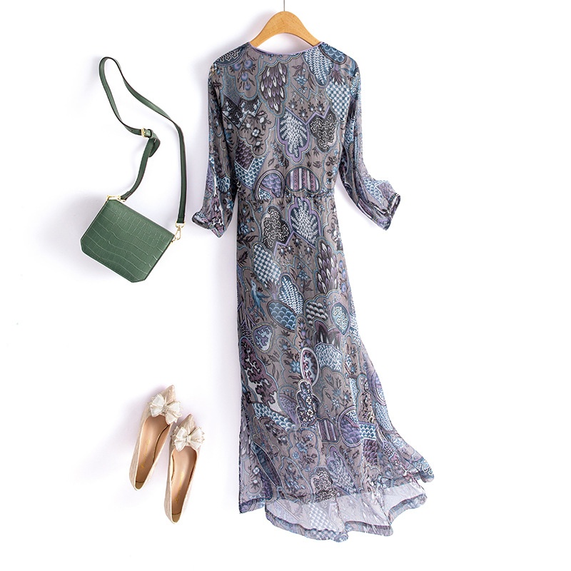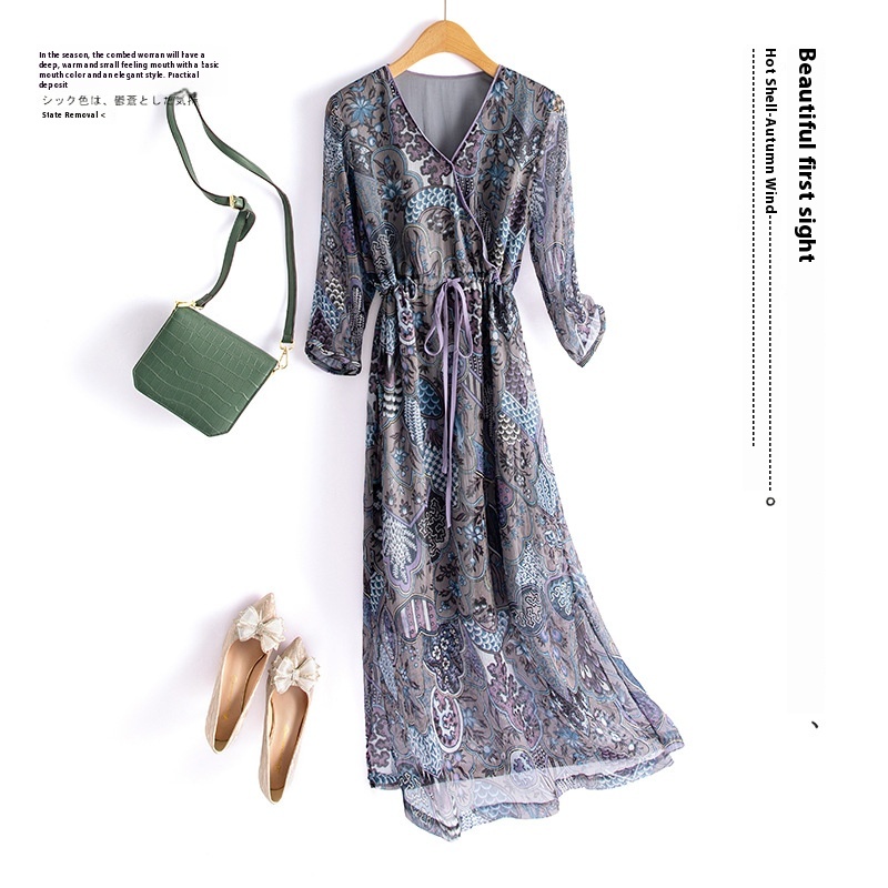 Summer Silk Dress With Five-point Sleeves Arrival Silk Temperament V-neck Drawstring Slim And Elegant Georgette Silk Dress