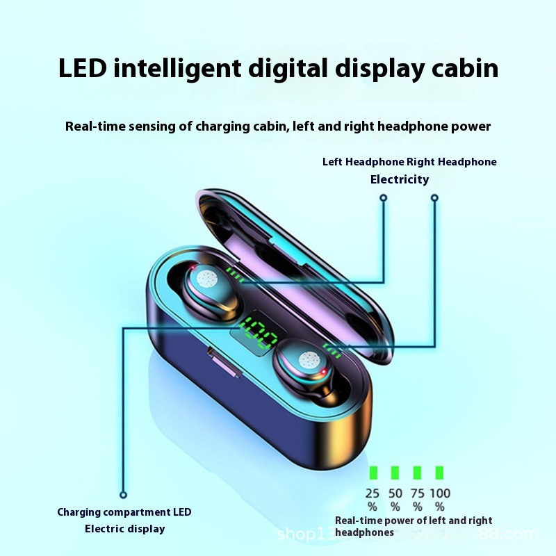 F9 Bluetooth Headset Wireless In-ear Huaqiangbei Noise Reduction Ultra-long Battery Life High-power Headset Drop Shipping
