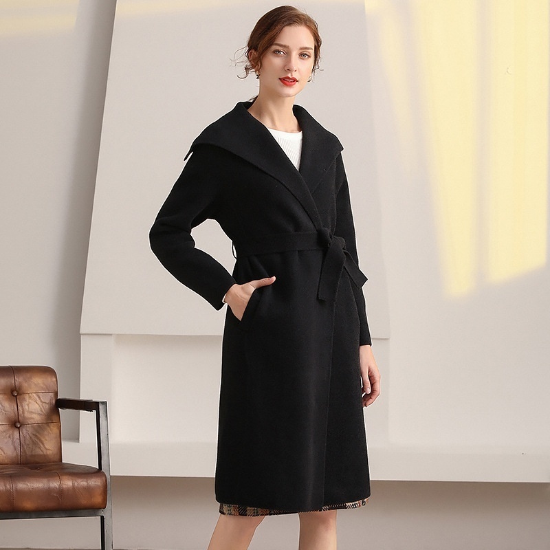 Women's Woolen Coat,Medium And Long,Thickened Knitted Double-sided Woolen Coat With Belt,Elegant Commuting,Shenzhen Nanyou Women's Clothing
