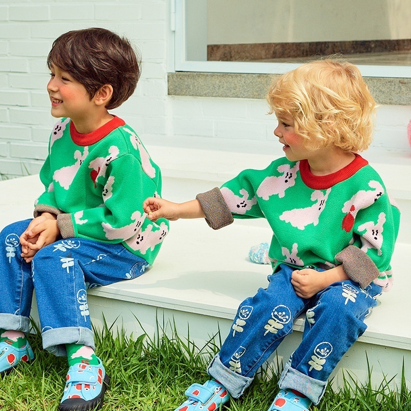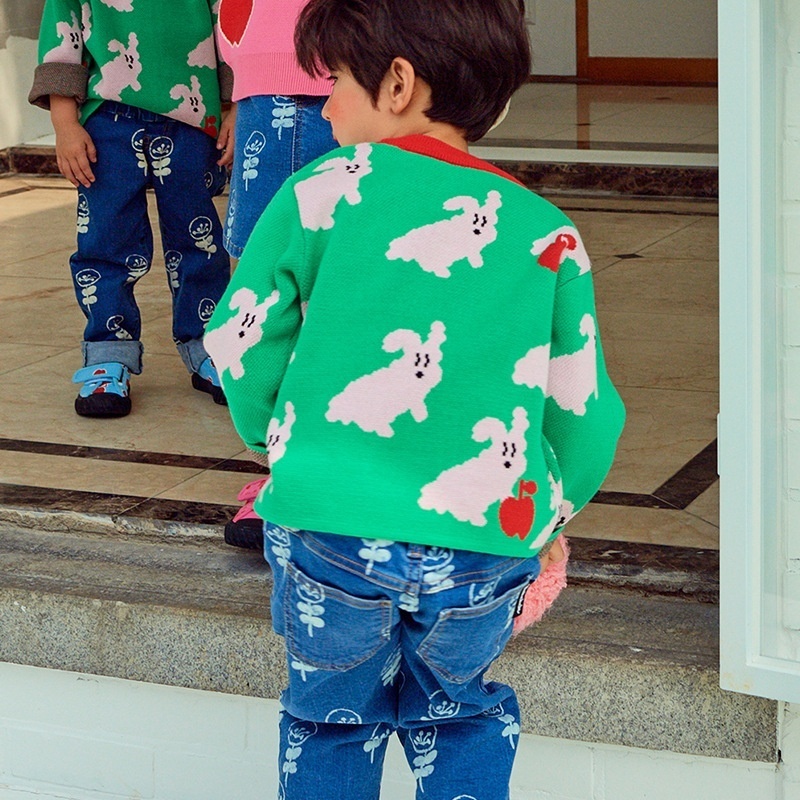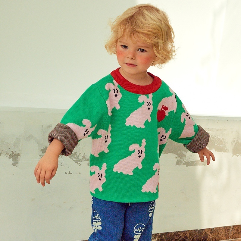 Autumn BESweater Green Cartoon Puppy Knitted Sweater Boys And Girls Sweater