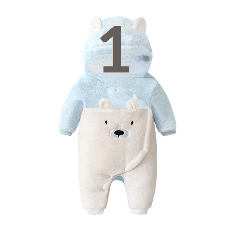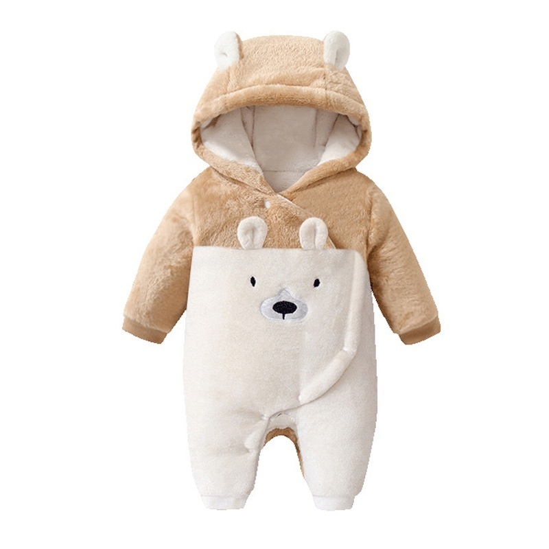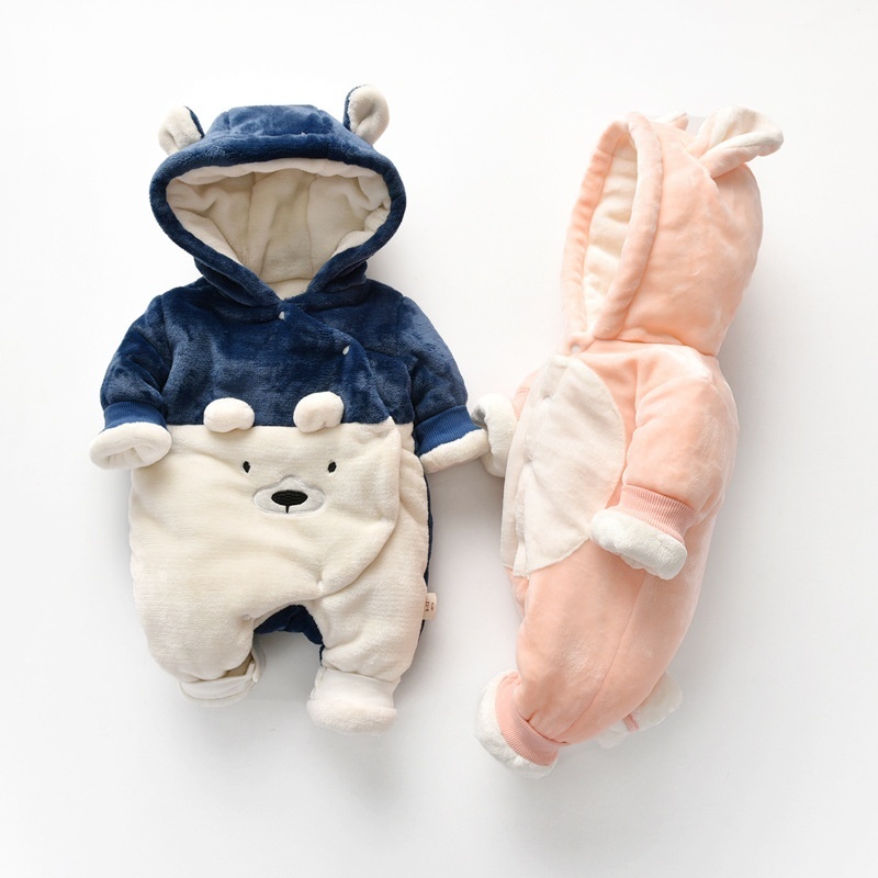Autumn And Winter Baby Jumpsuit Double-layer Thickened Hooded Bear Shape Baby Romper Crawling Clothes6 Months Children's Clothing