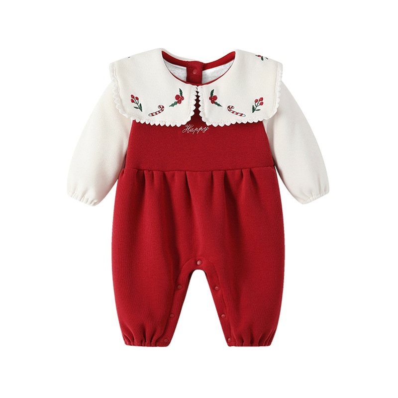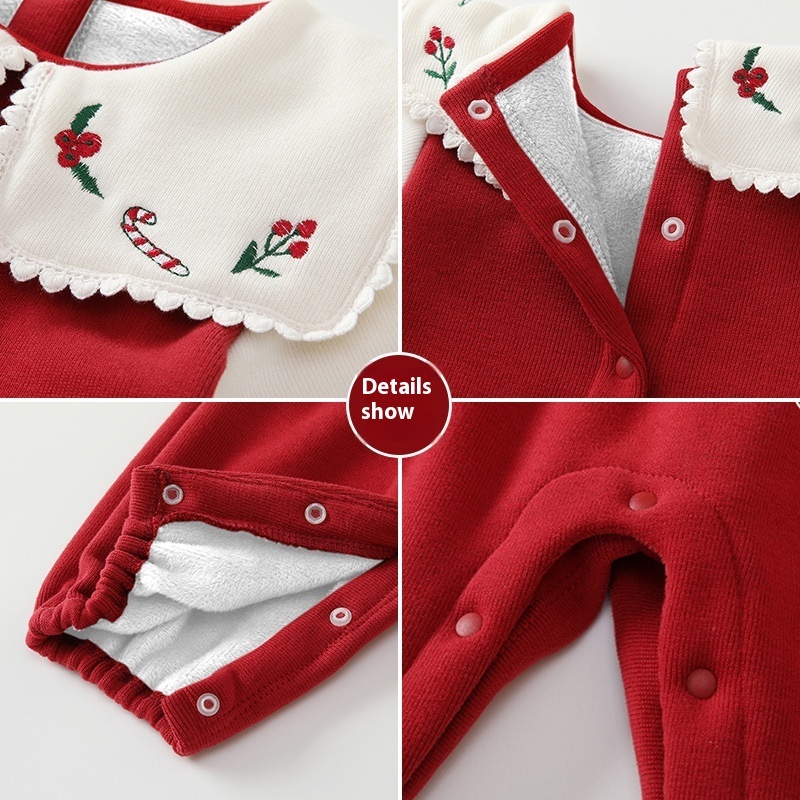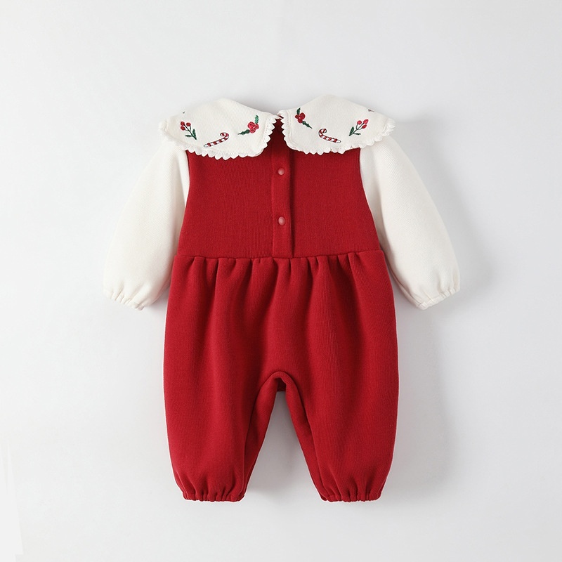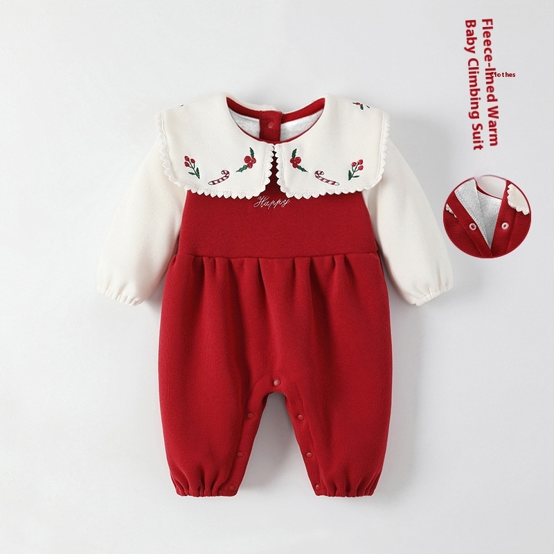 Baby Jumpsuit Autumn Long Sleeve Plus Velvet Warmborn Going Out Clothes Korean Version Color Matching Baby Girl Crawling Clothes