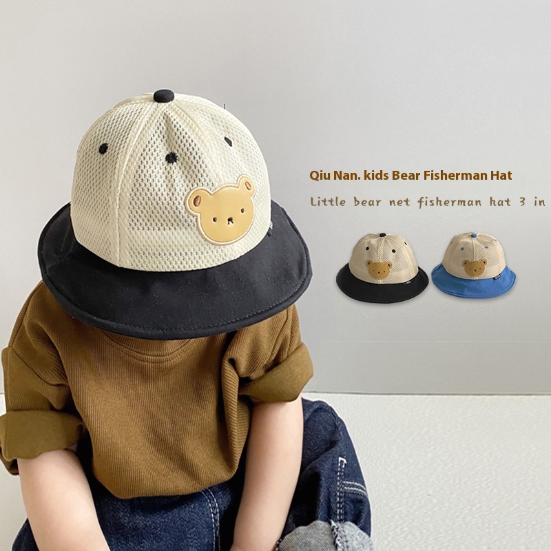 Qiunan Children's Hat Cartoon Bear Infant Sun Hat Baby Sunshade Fisherman Hat