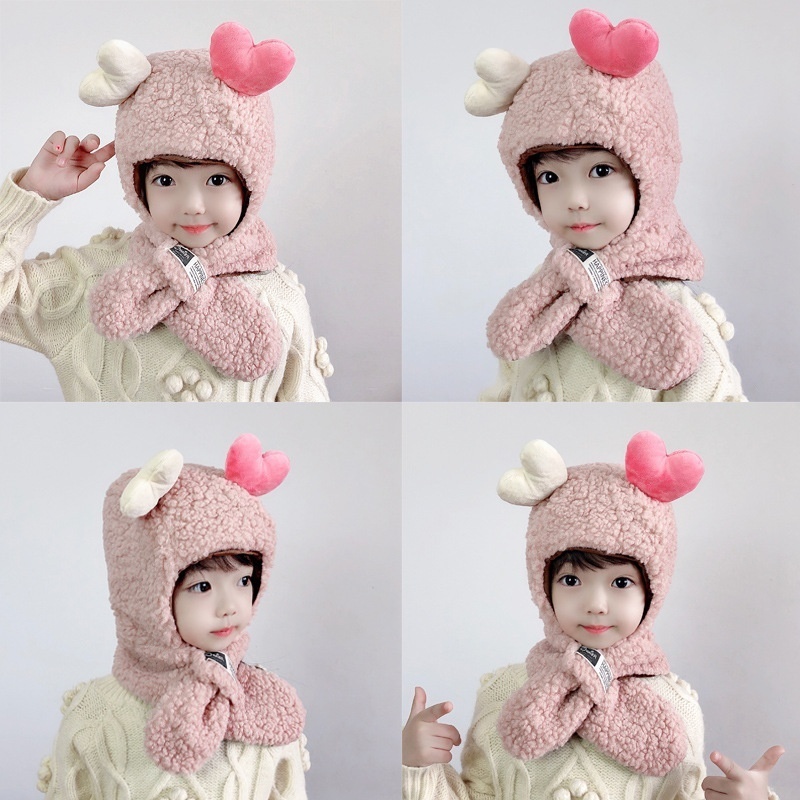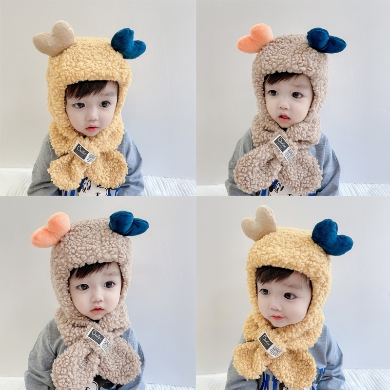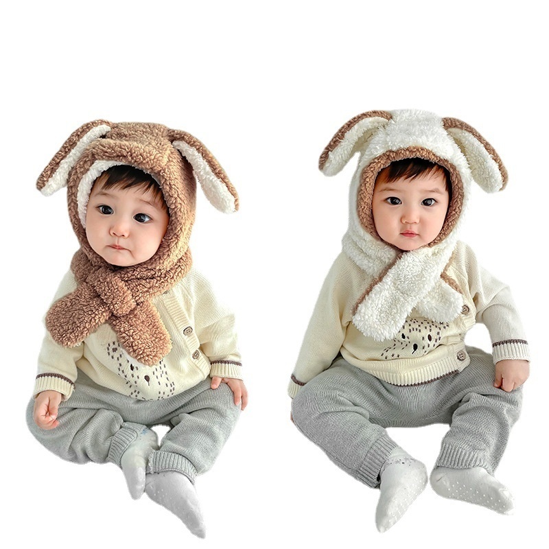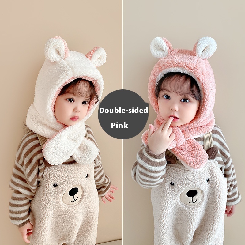Qiunan Children's Hat Scarf Integrated Winter Infant Face Protection Plush Cute Super Cute Baby Ear Protection Hat
