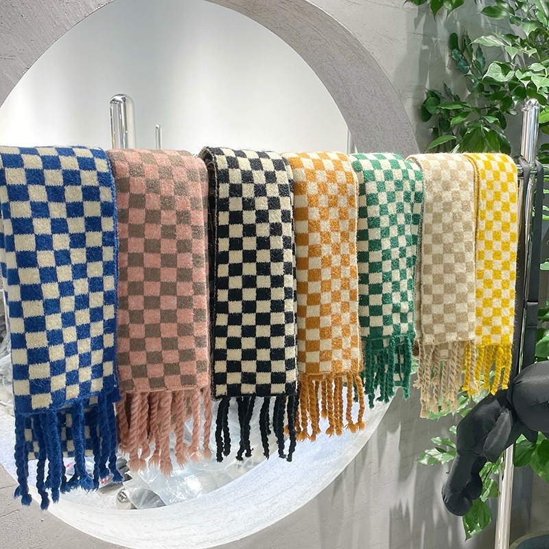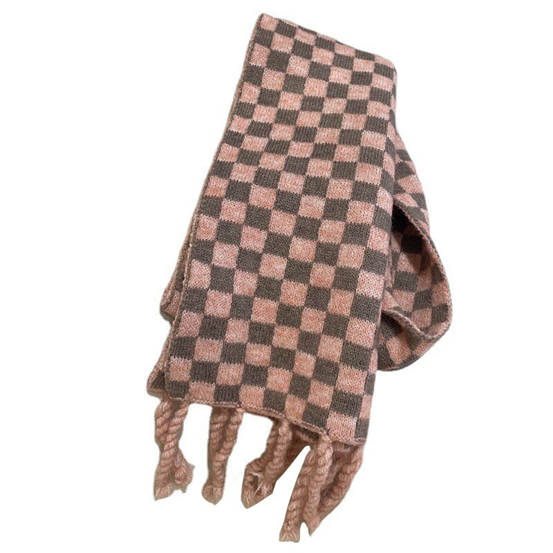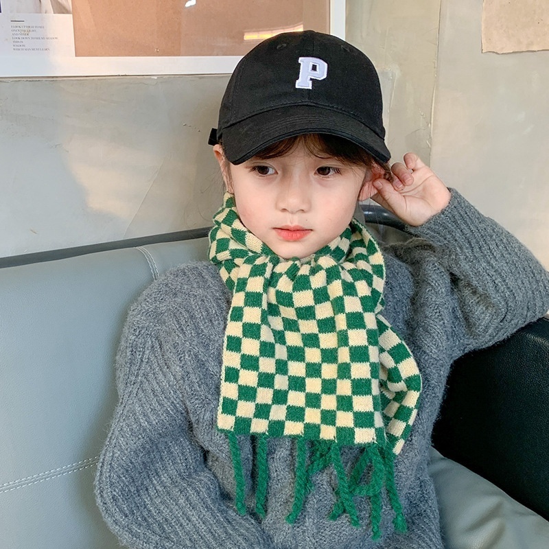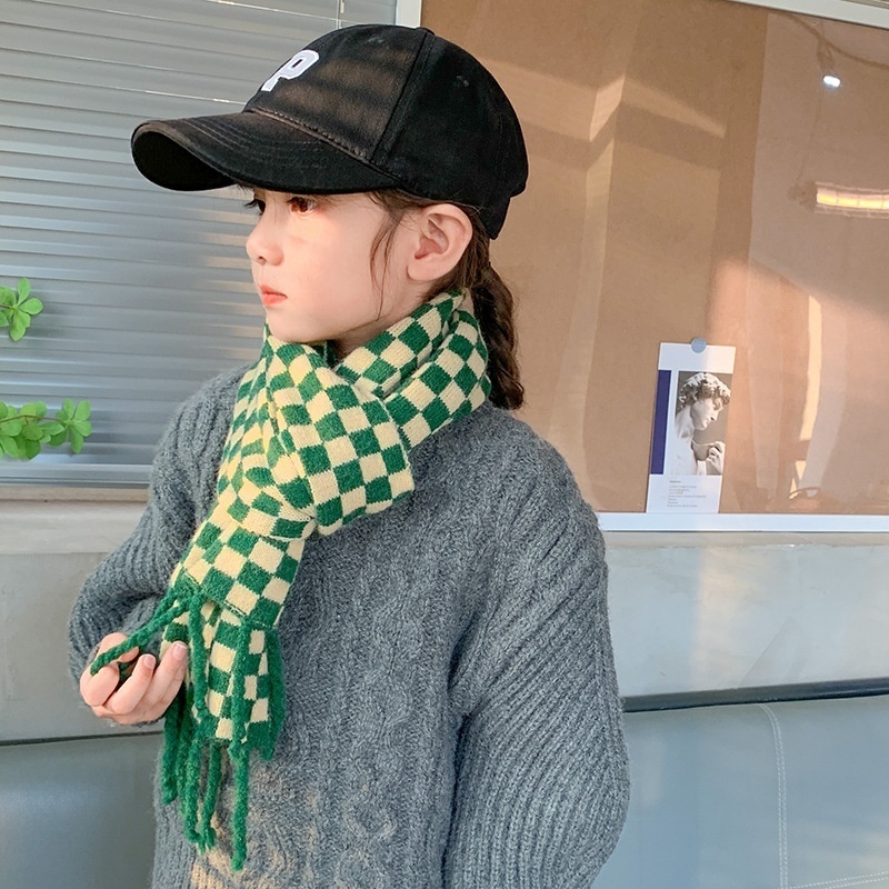 Qiunan Children's Scarf Winter Korean Style Fashion Plaid Tassel Boys And Girls Autumn And Winter Knitted Collar Baby Scarf