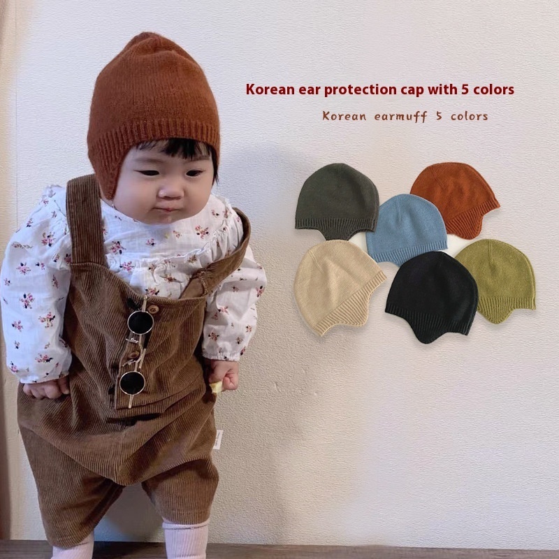 Qiunan Baby Hat Autumn And Winter Korean Fashion Cute Super Cute Ear Protection Hat Baby Knitted Hat Children's Wool Hat