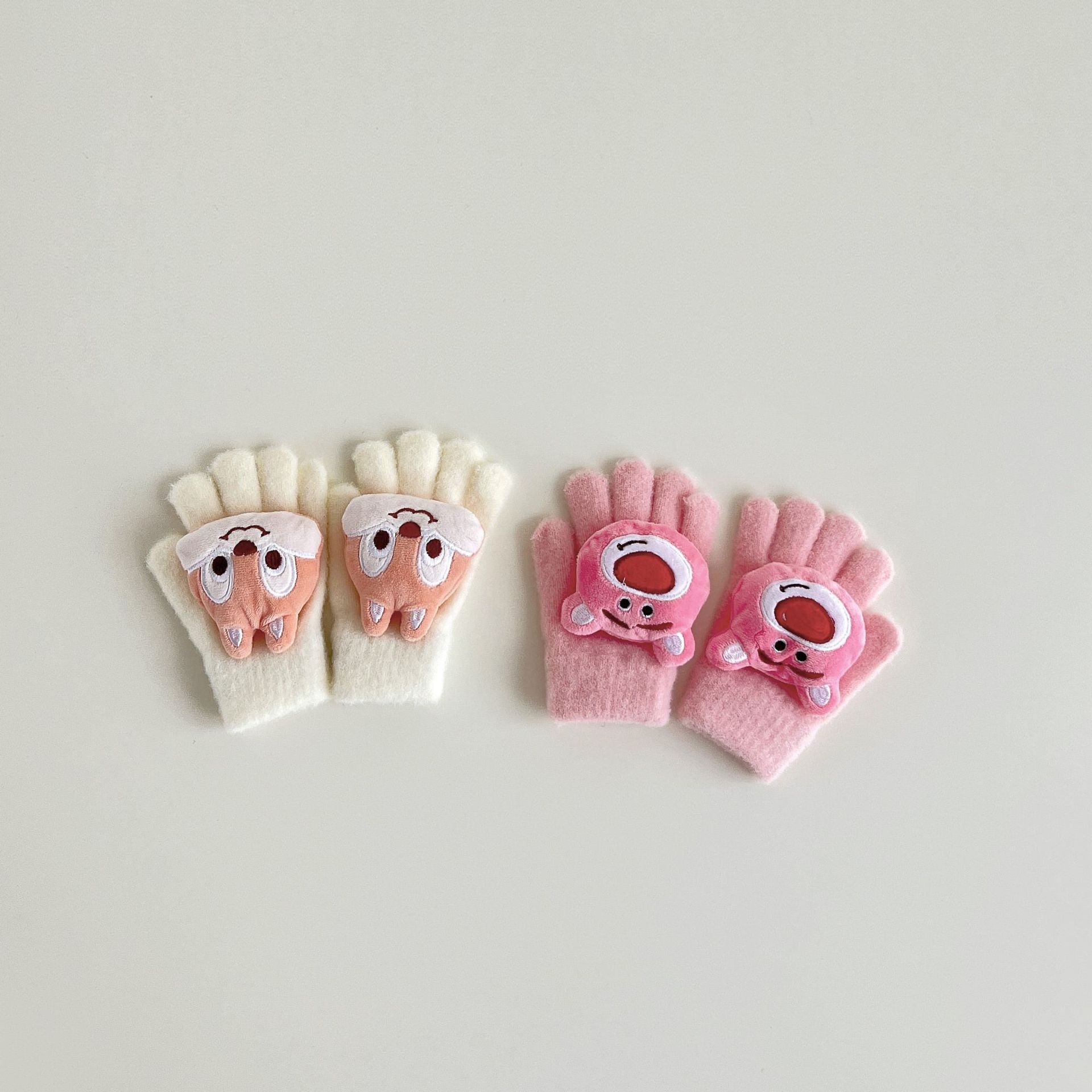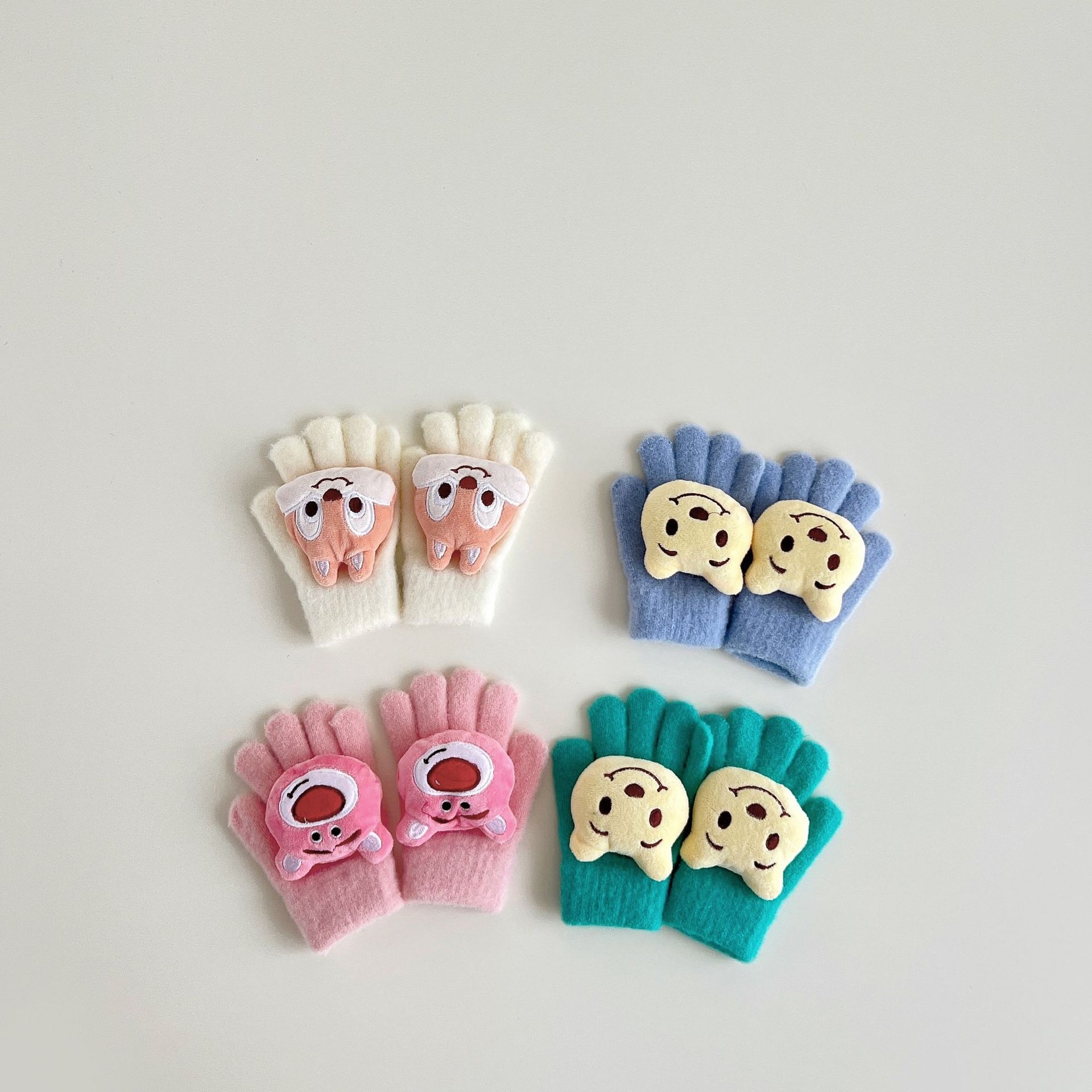 Autumn South Korean Children's Gloves Winter Cartoon Warm Finger Knitted Student Gloves