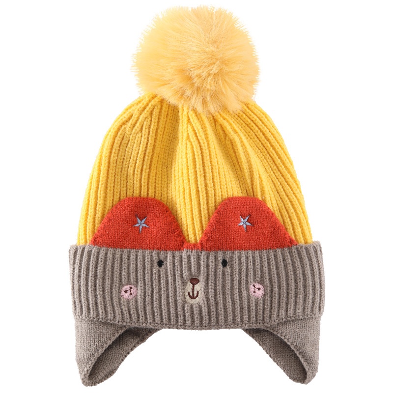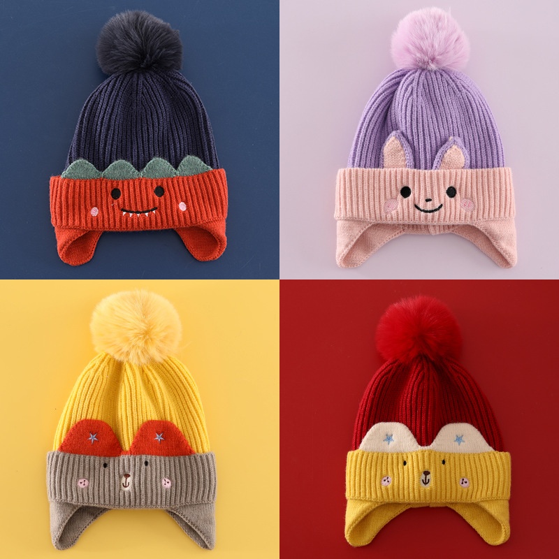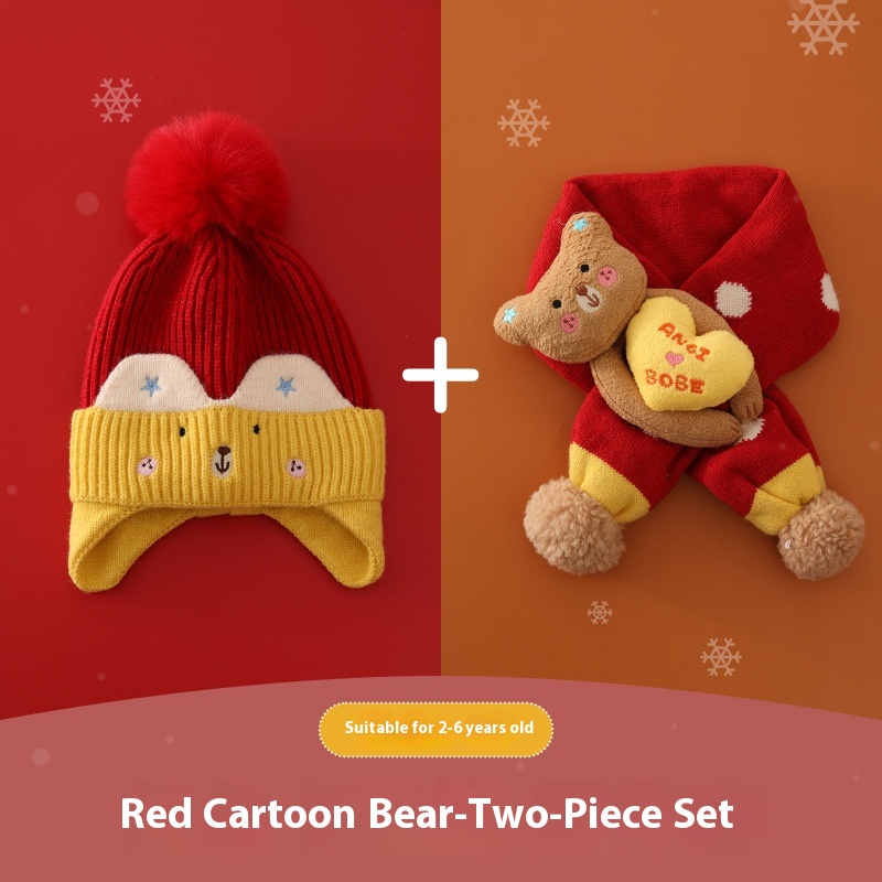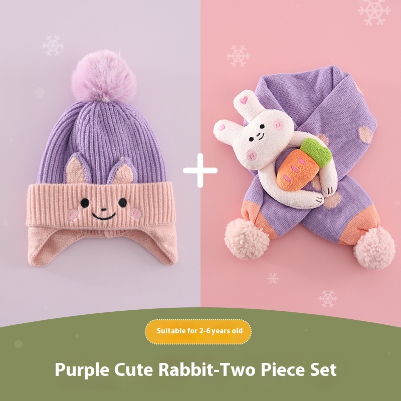 Qiunan Children's Hat Scarf All-in-one Winter Boys And Girls Cartoon Suit Knitted Wool Baby Earmuffs Hat