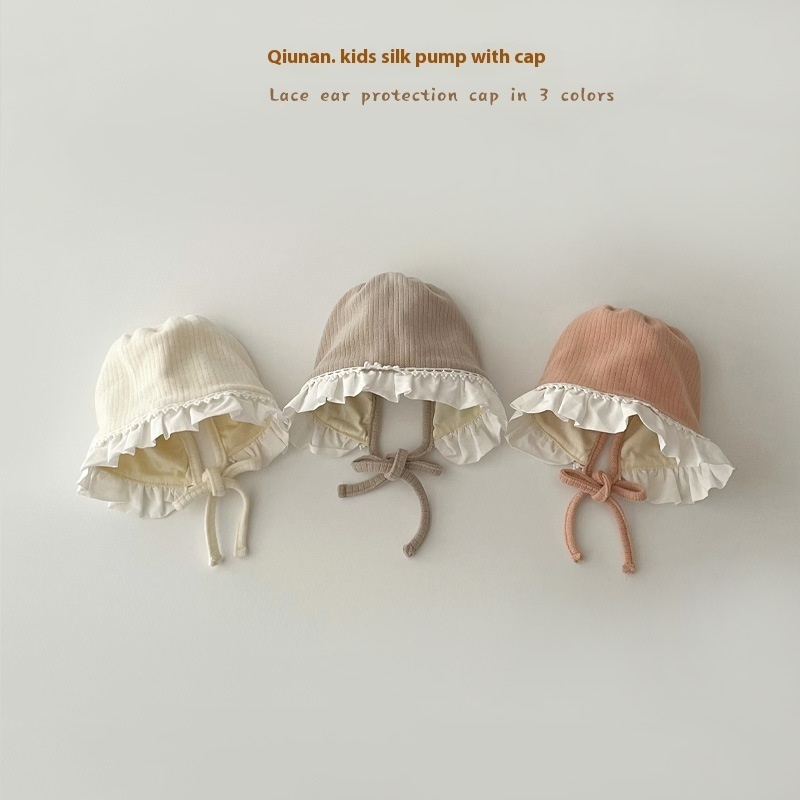 Qiunan Baby Hat Spring And Autumn Korean Version Lace Color Matching Princess Earmuffs Infant Lace Baby Girl Hat