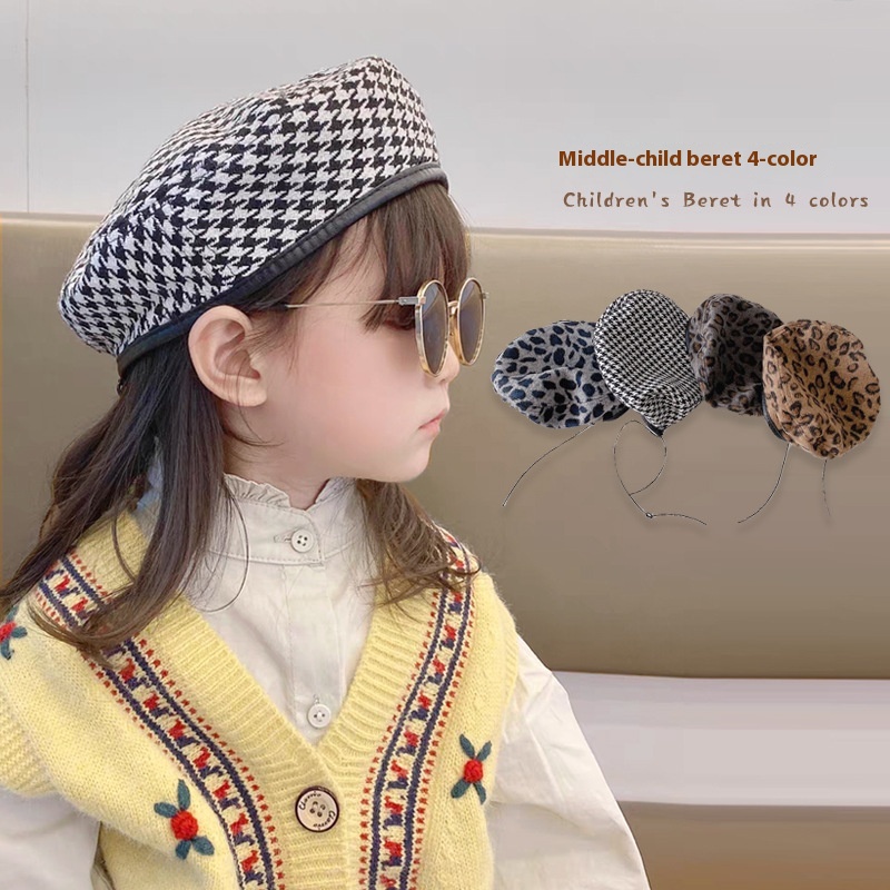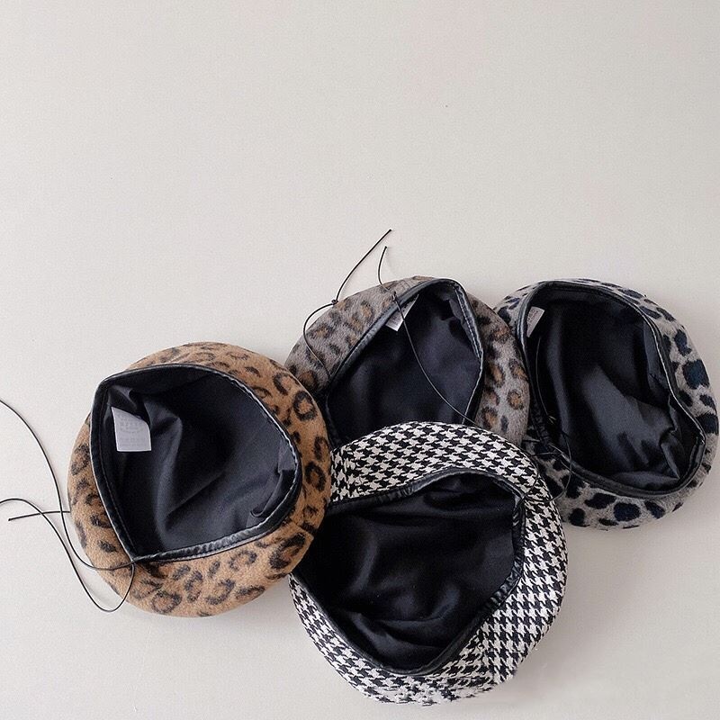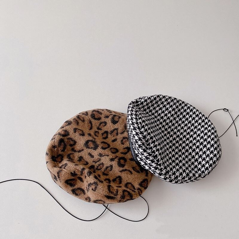 Qiunan Baby Hat Autumn And Winter Korean Style Fashion Leopard Print Beret Hat Girls Painter Hat Children Beret