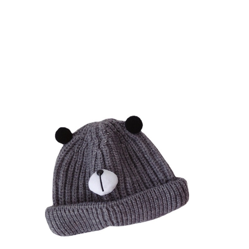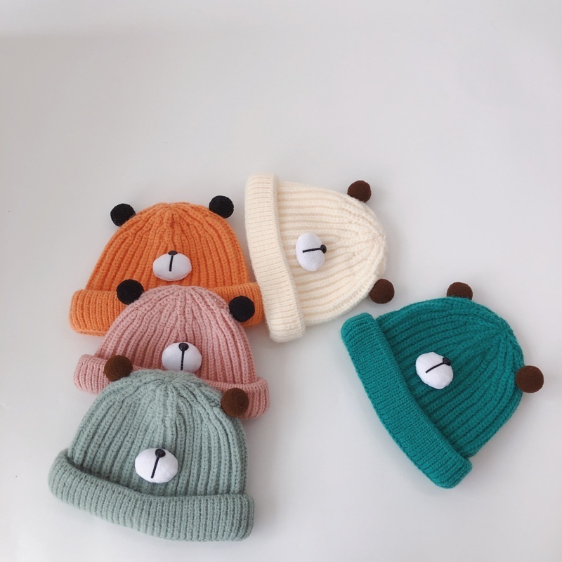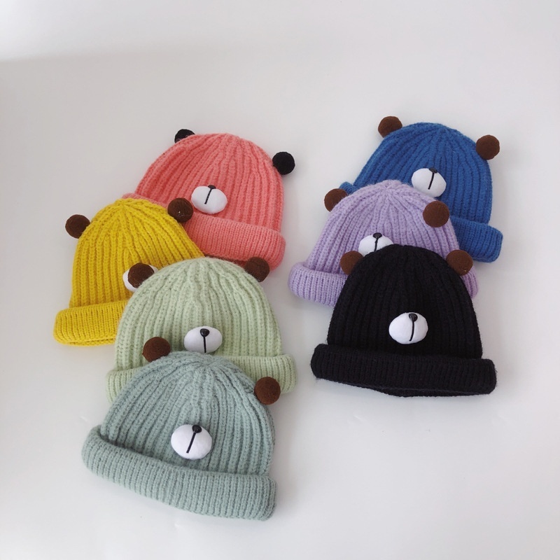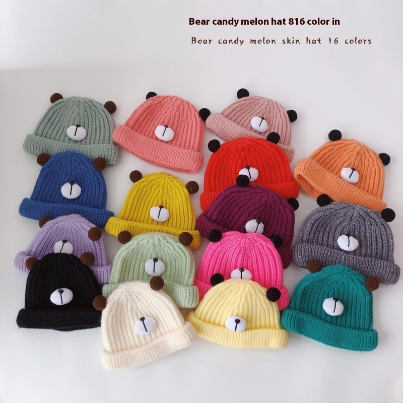 Qiunan Baby Hat Autumn And Winter Korean Version Candy Color Cartoon Bear Baby Pullover Hat Knitted Children's Wool Hat