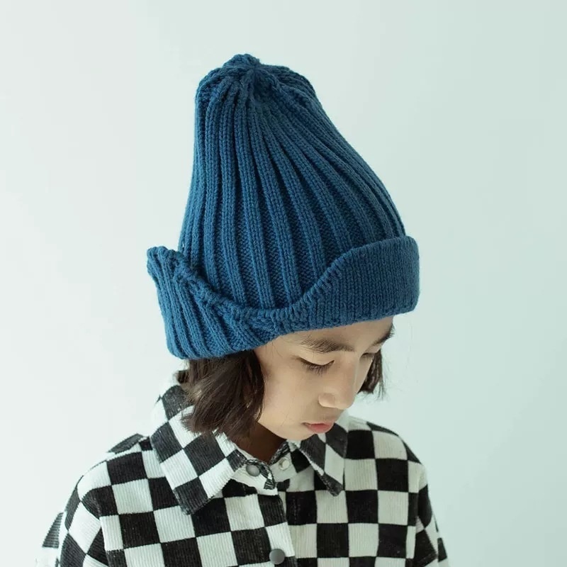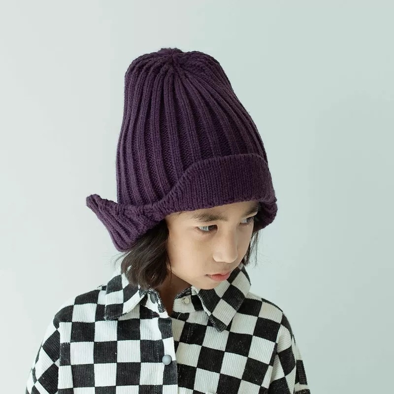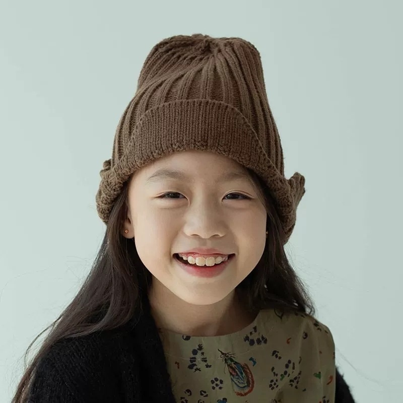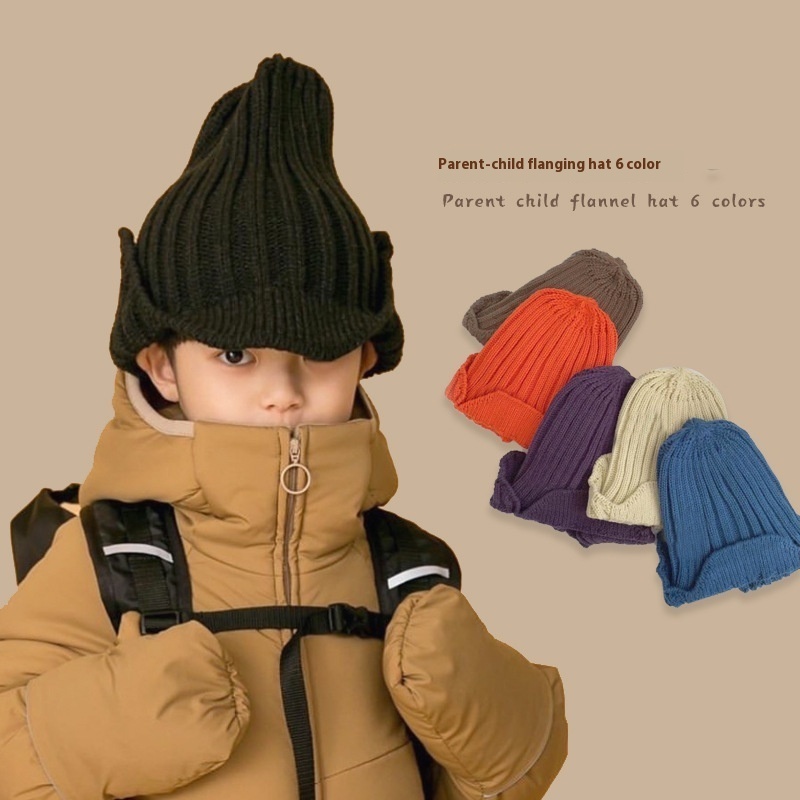 Qiunan Children's Wool Hat Korean Styley Children's Knitted Hat Children's Flip Ear Solid Color Knitted Hat Neutral Parent-child Hat
