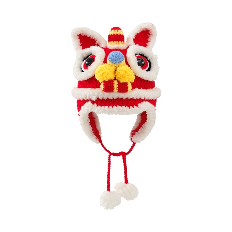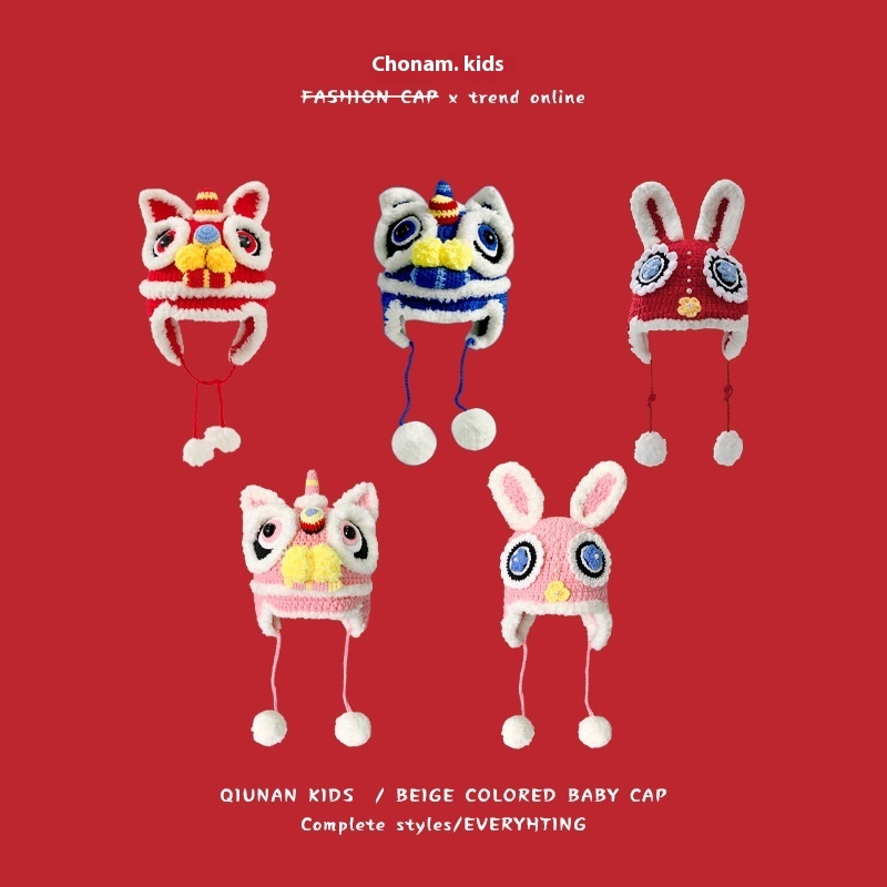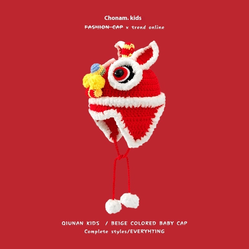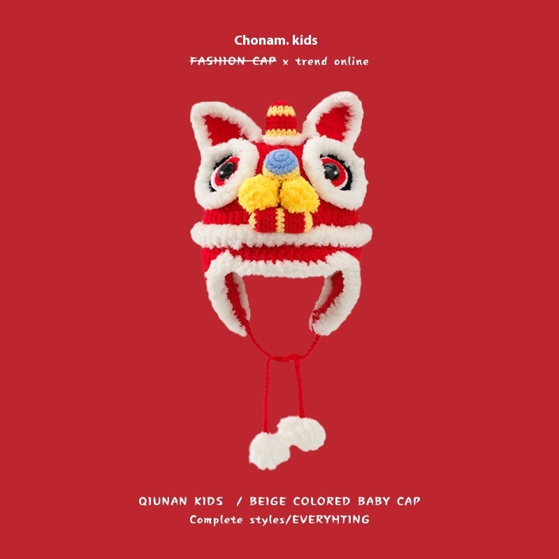 Qiunan Children's Hat Pure Handmade Tiger Head Hat Autumn And Winter Warm Wool Hat Chinese Style Lion Hat Year Tiger Hat