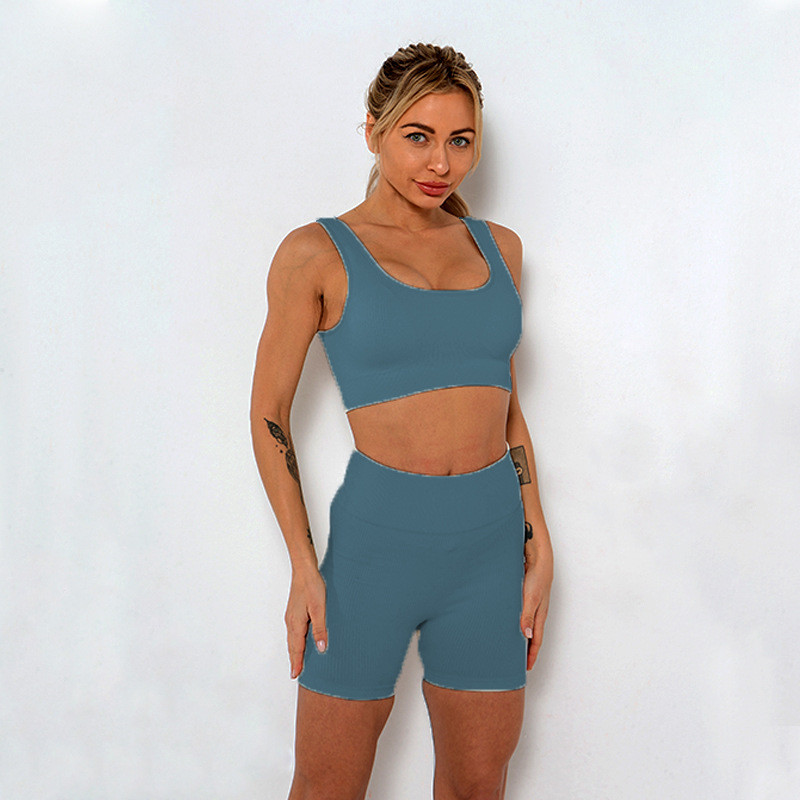 Popular European And American Seamless Knitted Sexy Sports Bra Shorts Yoga Wear Bra Fitness