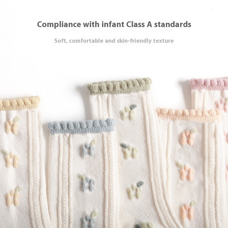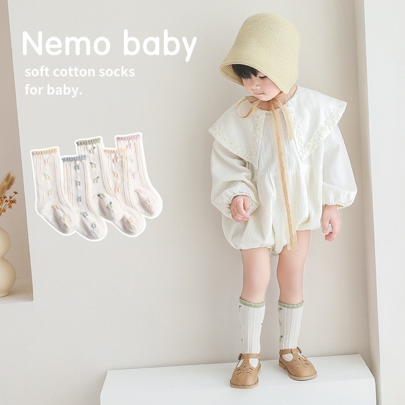 Spring Girls Socks Combed Cotton Children's Flower Middle-tube Socks Korean Princess Baby Socks