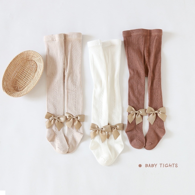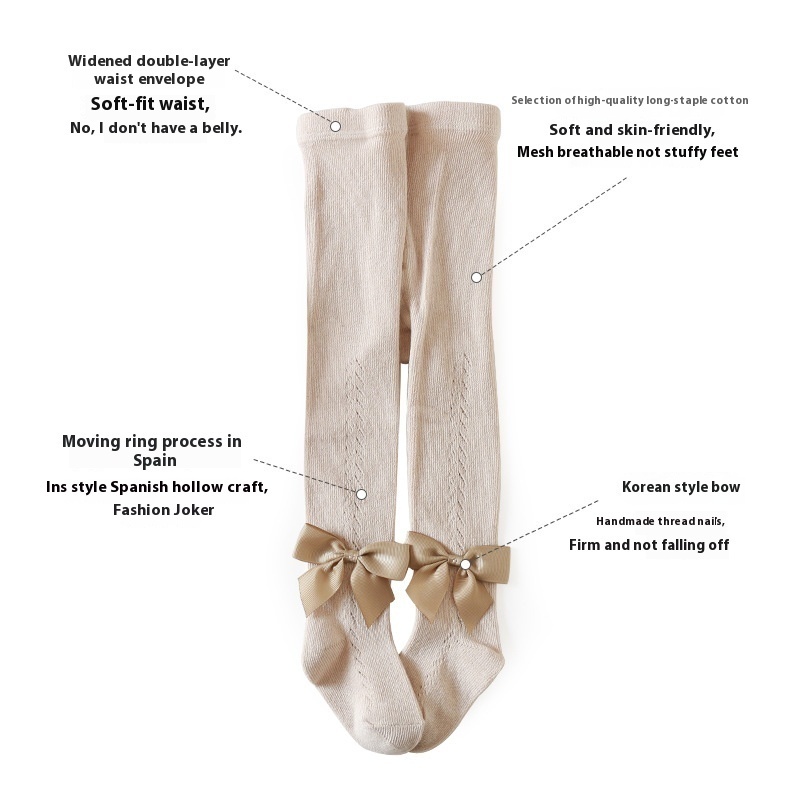 21 Spring And Summer Spanish Style Shifting Circle Hollow Pantyhose Combed Cotton Big Bow Girls Princess Socks