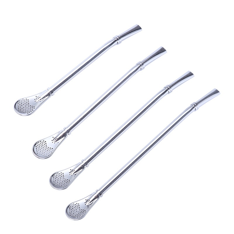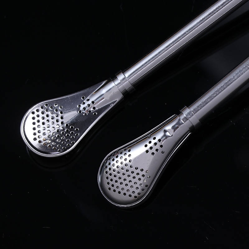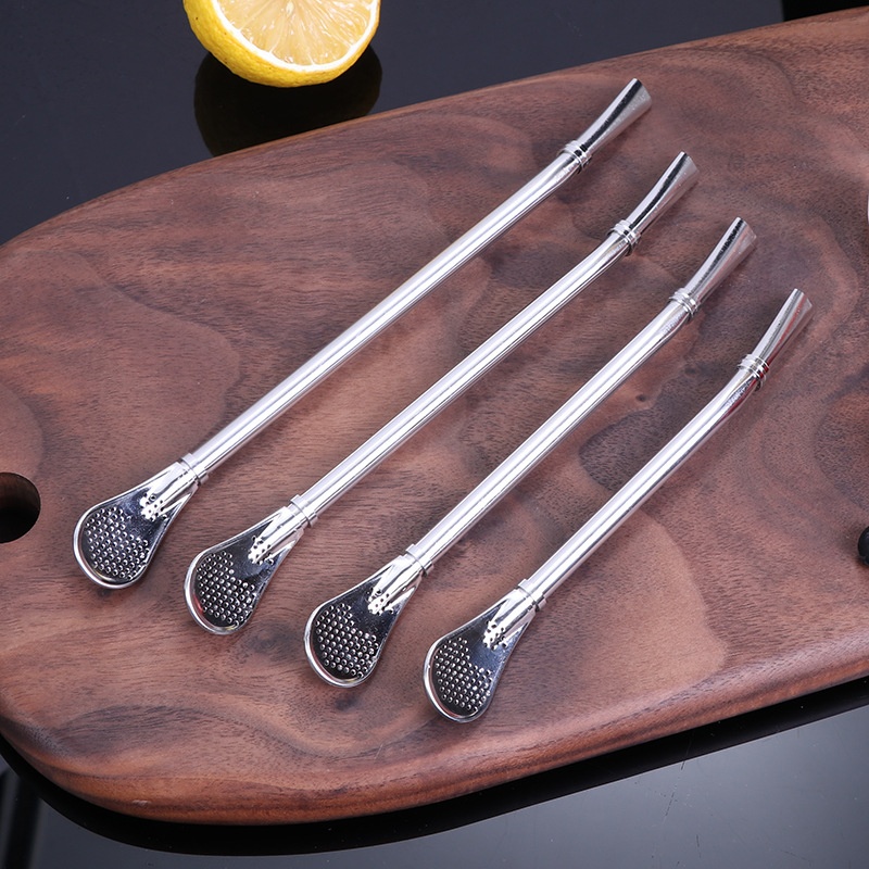 304 Stainless Steel Straw Spoon Creative Dual-purpose Coffee Beverage Stirring Spoon Juice Milk Tea Filter Straw Spoon