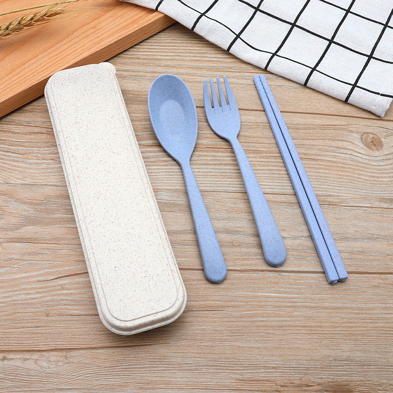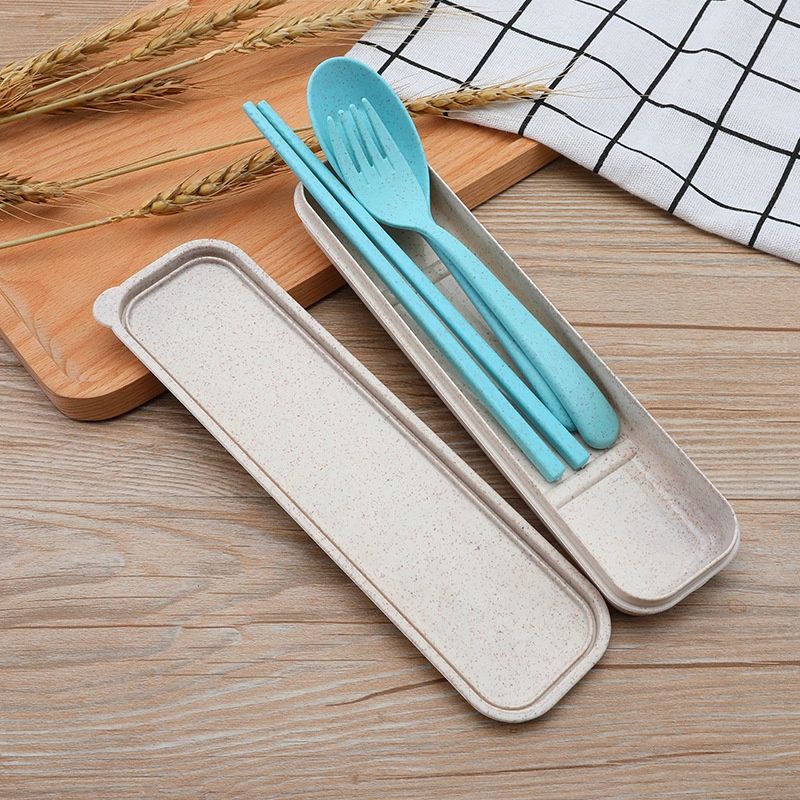 Wheat Straw Travel Portable Cutlery Set Spoon Fork Chopsticks Three-Piece Tableware Storage Box Set Gift