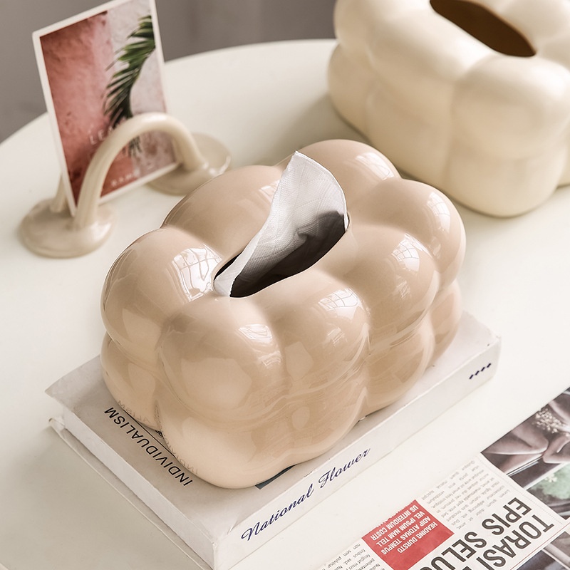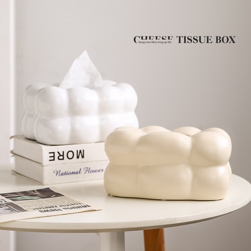 Light Luxury Creative Cream Style Ceramic Tissue Box Decoration