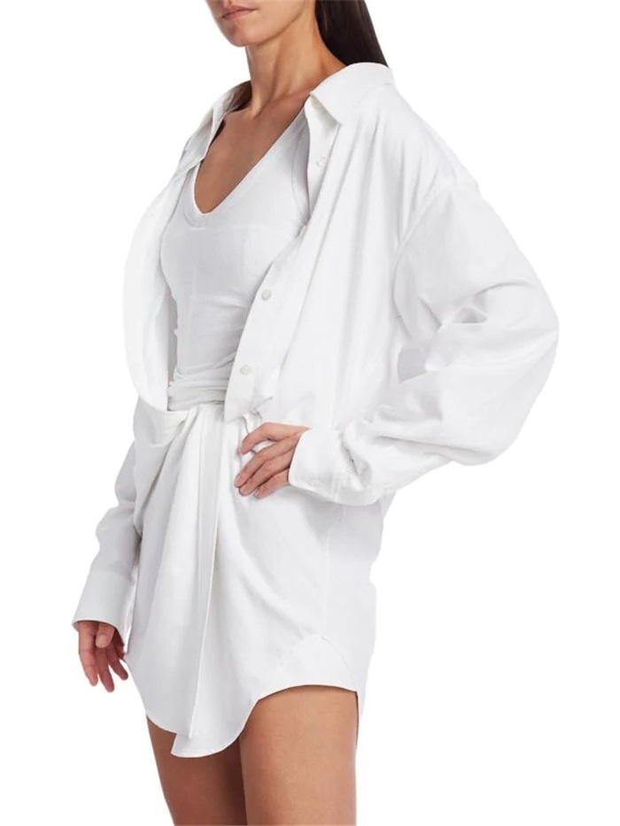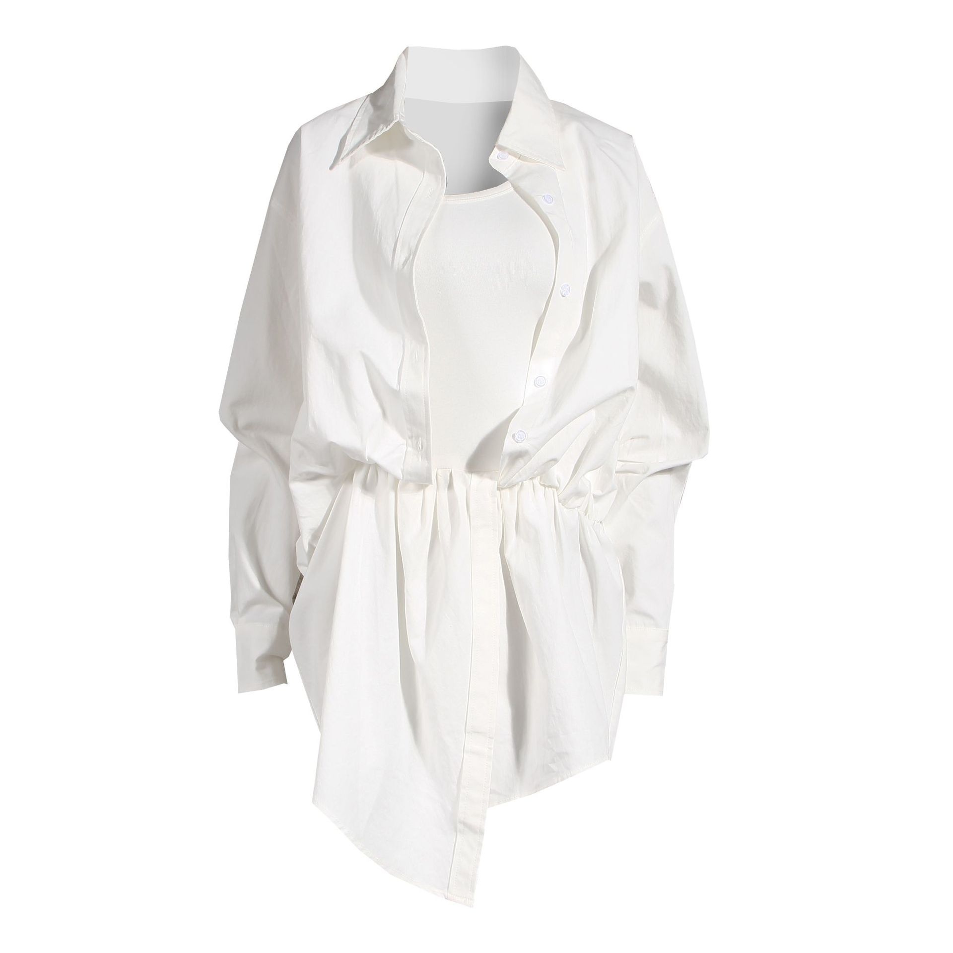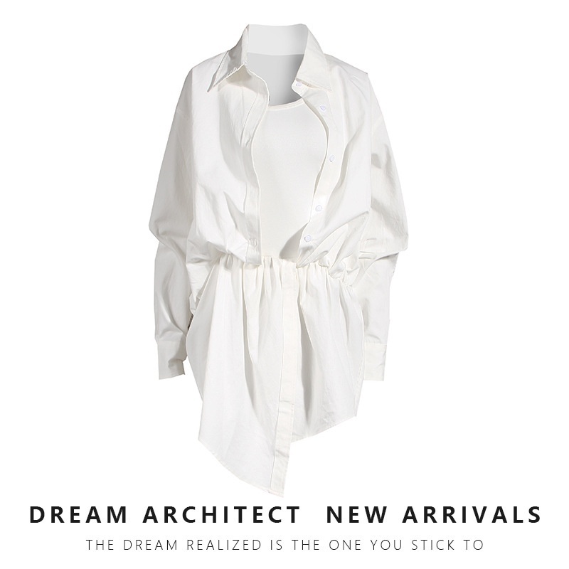 White Irregular Suspender Shirt Dress Female AWSame Design Niche Medium And Long Fake Two-piece Dress