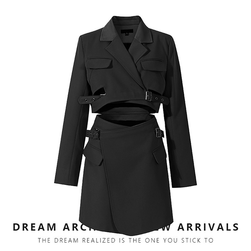 Niche Design Fake Two-piece Suit Handsome Andy Slim Suit Jacket High Waist Skirt Short Skirt Jumpsuit