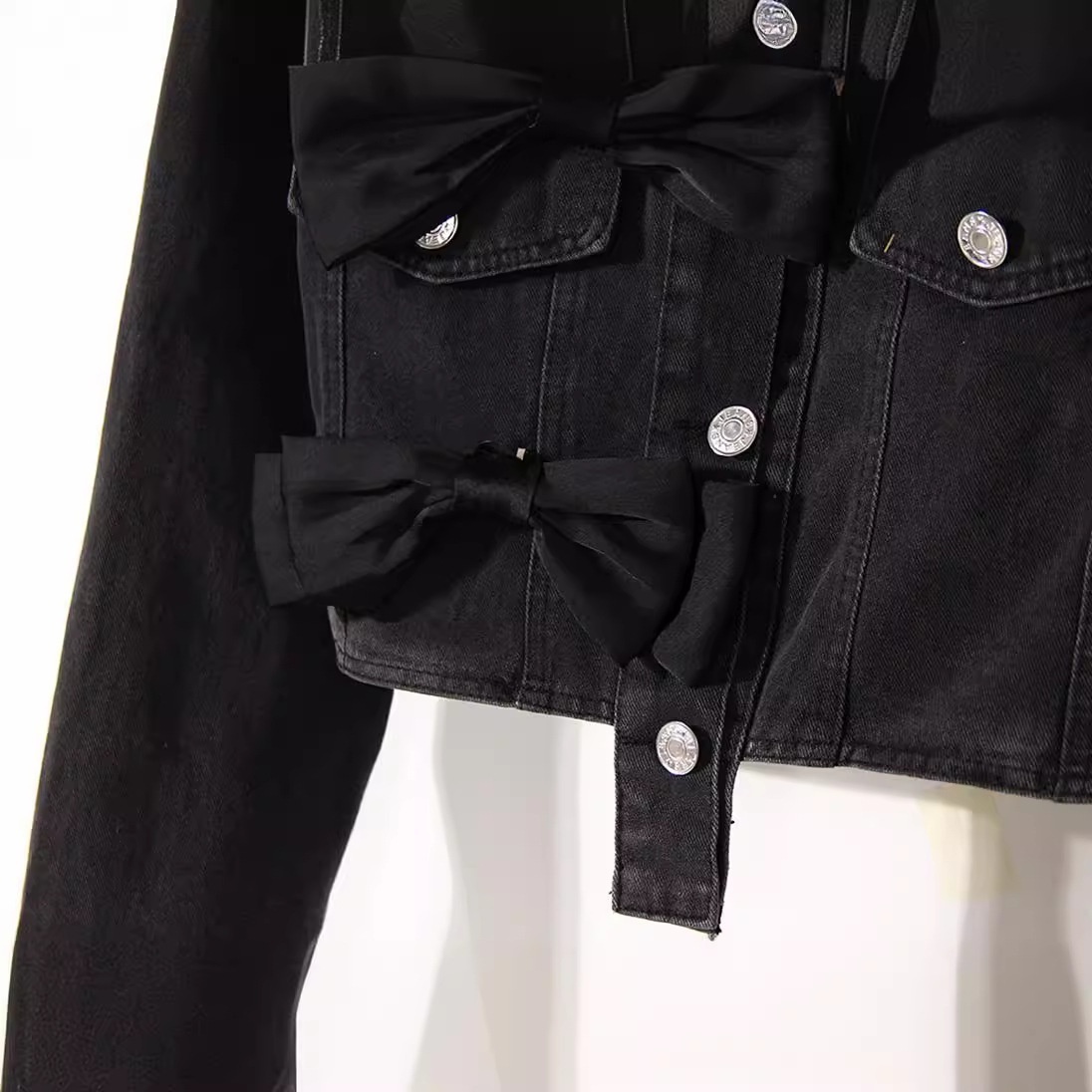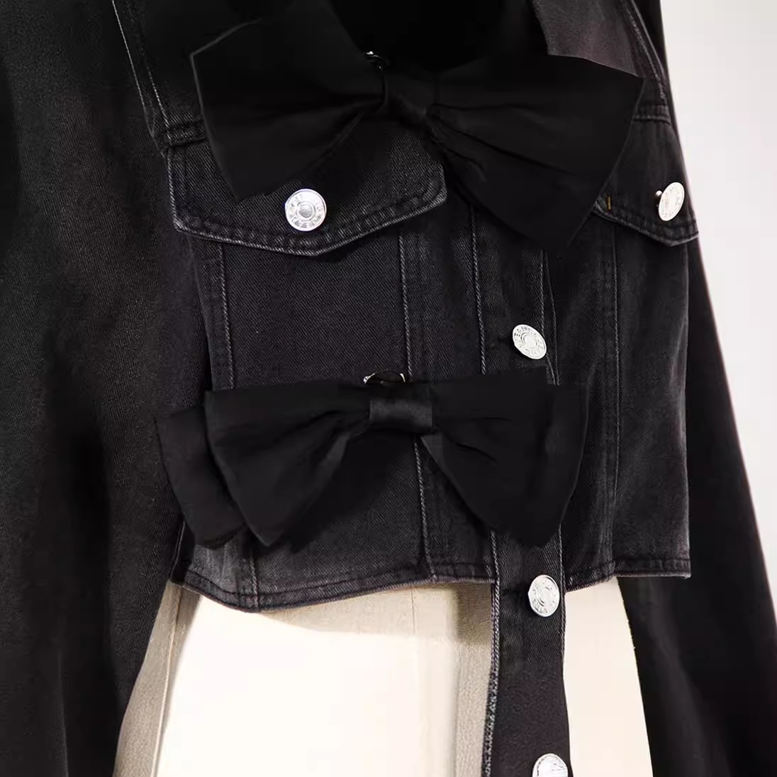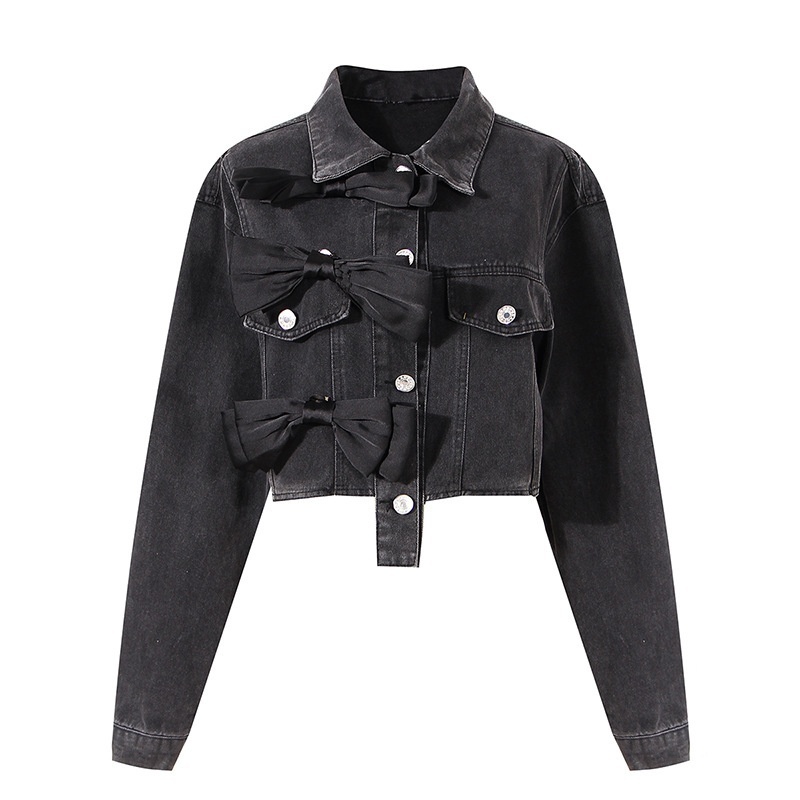Short Denim Jacket For Women Spring Retro Design Three-dimensional Bow Small Versatile Top