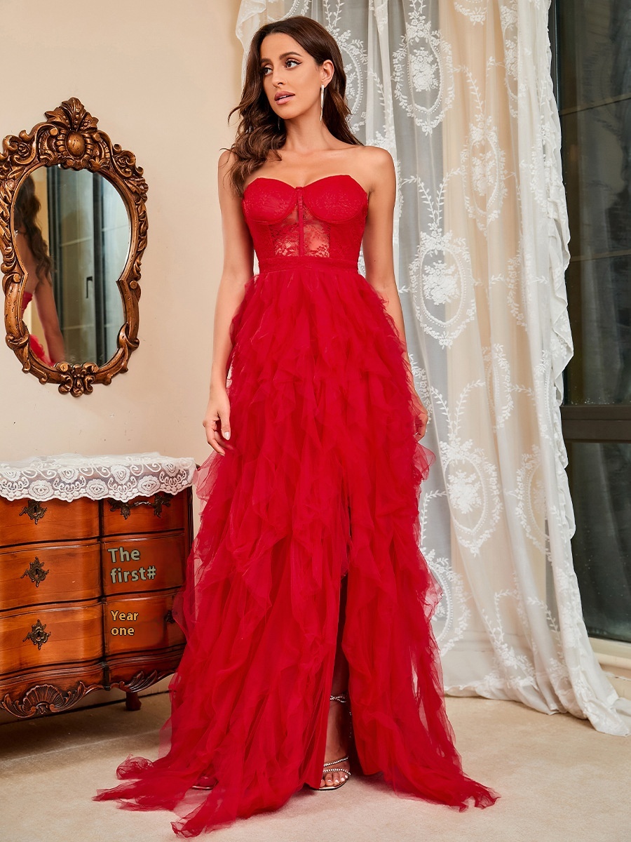 Lace Mesh Top Sexy Evening Dress