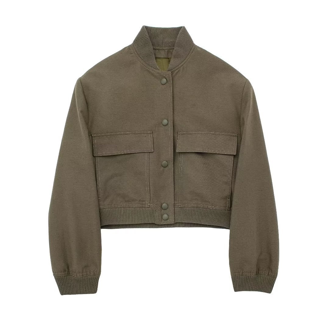 Women's Jacket With Large Pockets French Solid Color Single-breasted Baseball Jacket