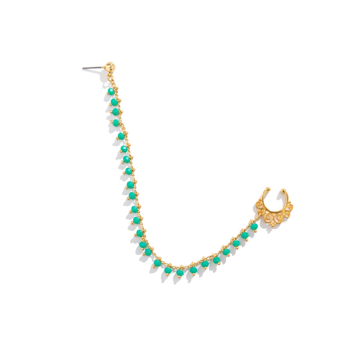 Ethnic Style Imitation Crystal Tassel Integrated Earrings Nose Ring Sweet Cool Metal Piercing Nose Clip