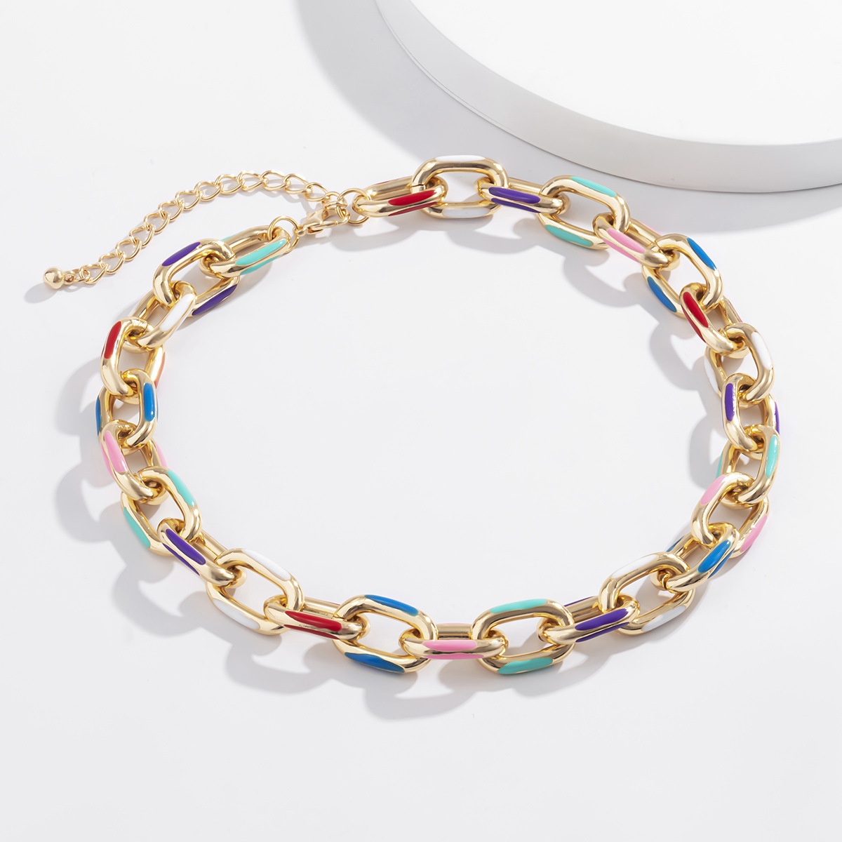 European And American Jewelry Geometric Simple Cold Style Cross Chain Necklace Female Fashion Mixed Color Oil Drop Metal Necklace