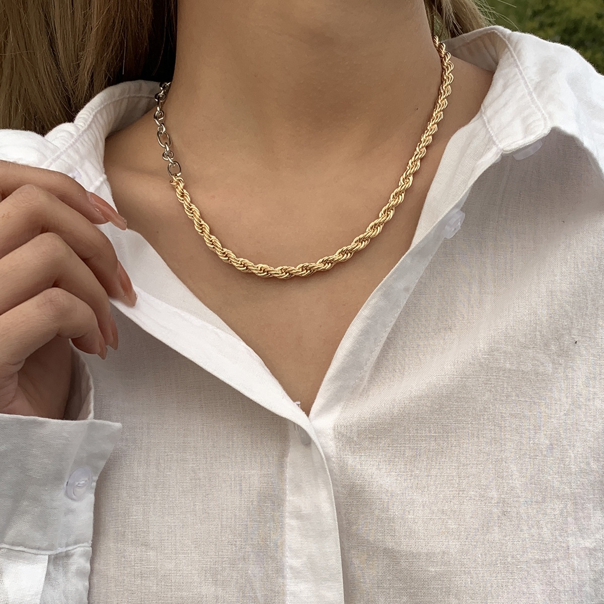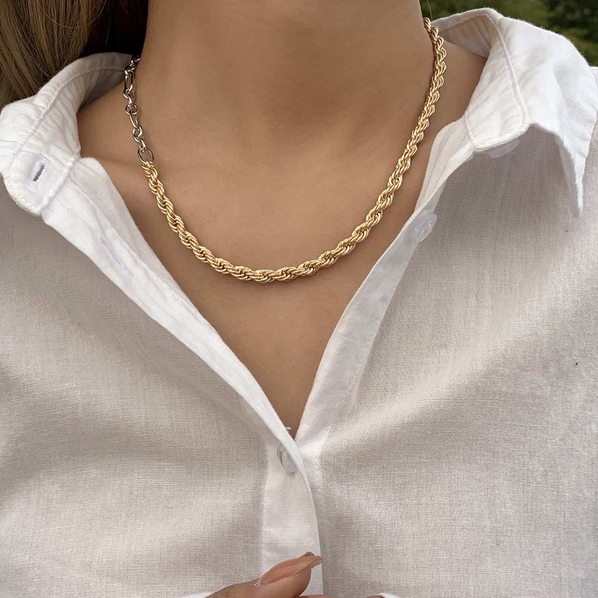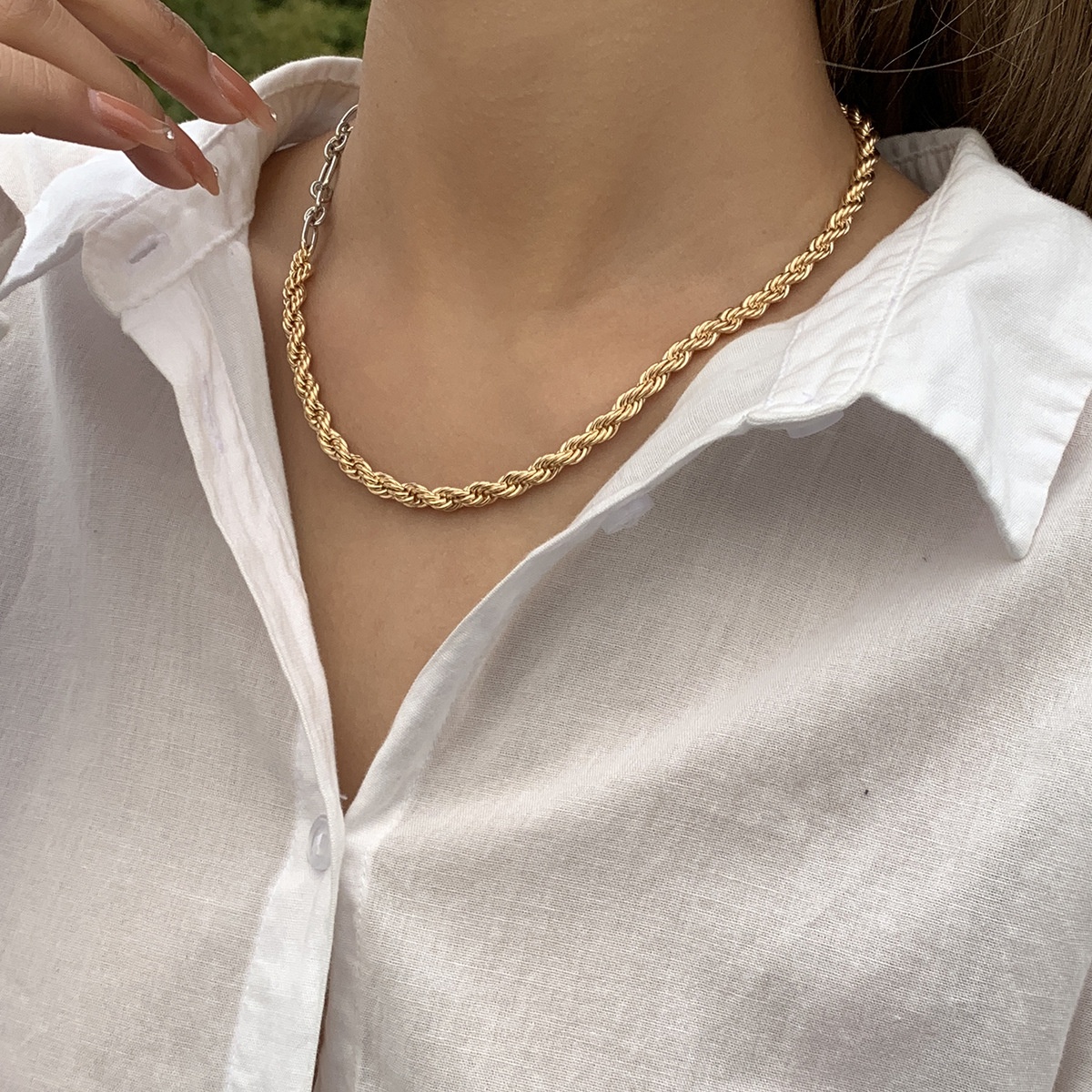 European And American Jewelry Fashion Metal Mixed Color Necklace Personality Simple Temperament Twist Chain Necklace