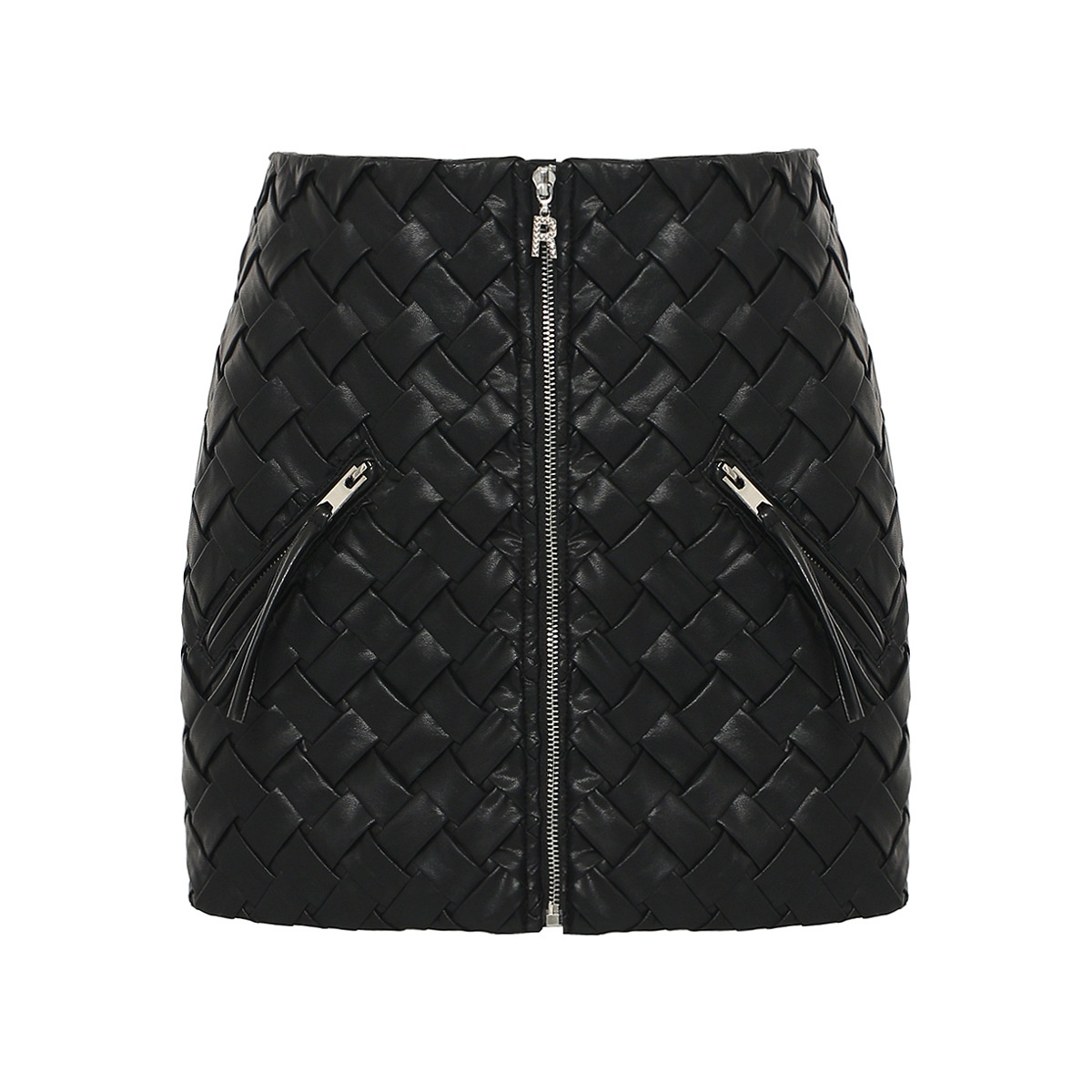 Personality Braided Zipper Street Bombing Domineering Leather Skirt Hip Skirt Female1684