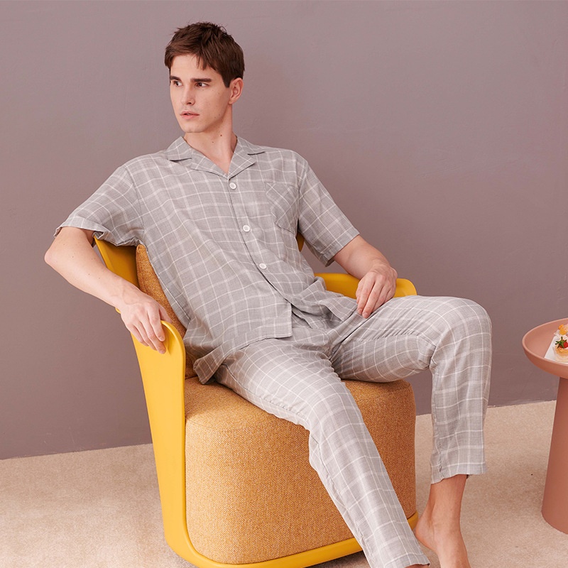 Japanese Style Bamboo Fiber Double-layer Short-sleeved And Long-sleeved Couple Home Clothes Pajamas Men And Women Pajamas Can Be Worn Outside