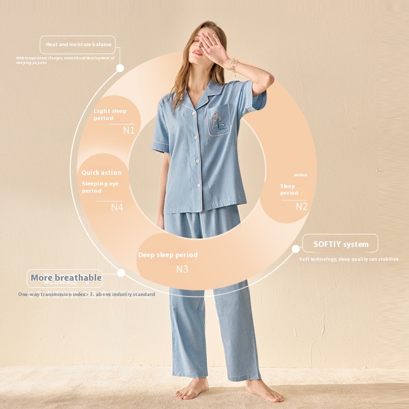 Summer Cotton Short-sleeved Home Clothes Japanese Style Cotton Couple Pajamas Women's Men's Set