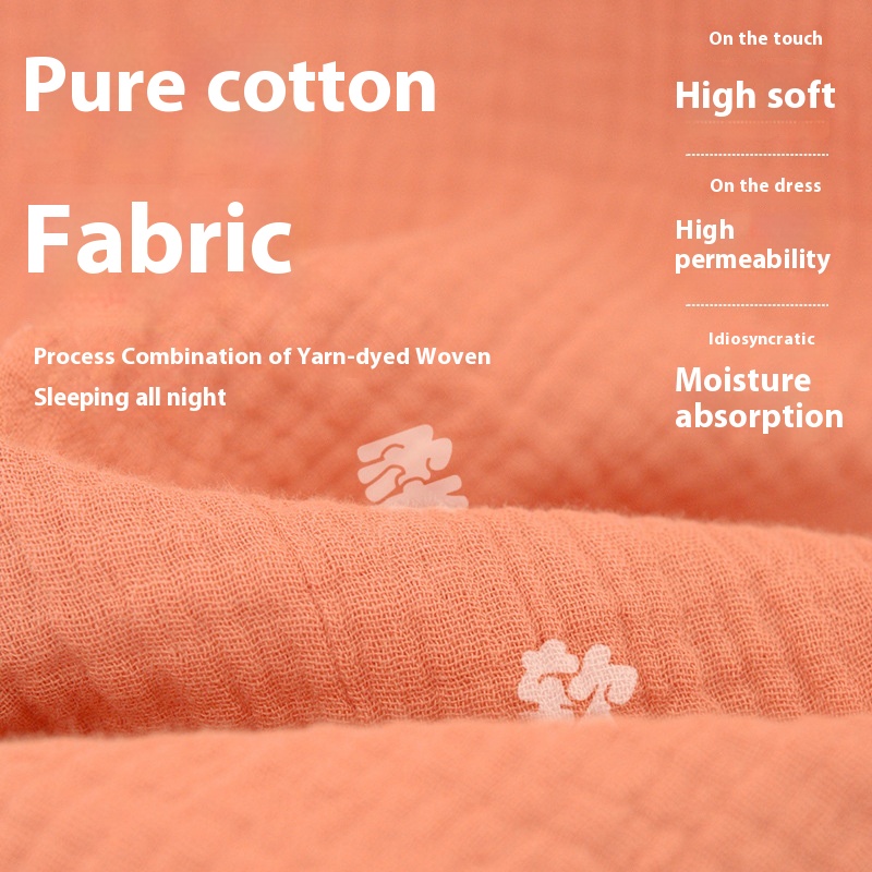 Couple Pajamas Double-layer Yarn Crepe Pure Cotton Pajamas Men's Spring And Autumn Solid Color Couple Home Clothes Suit Can Be Worn Outside