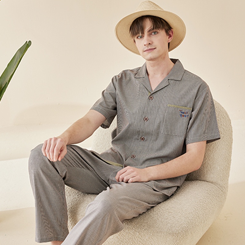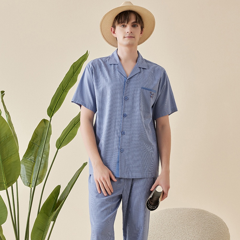 Xianhudun Antibacterial Houndstooth Spring And Summer Pure Cotton Pajamas Men's Cotton Short-sleeved Thin Men's Home Clothes