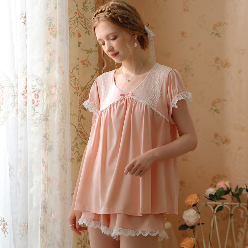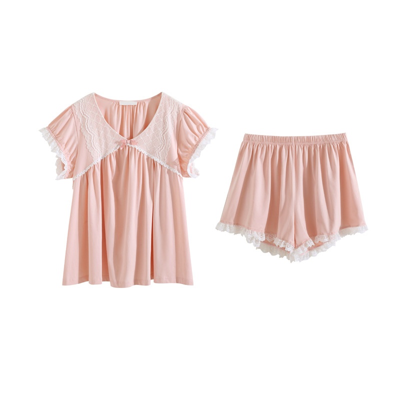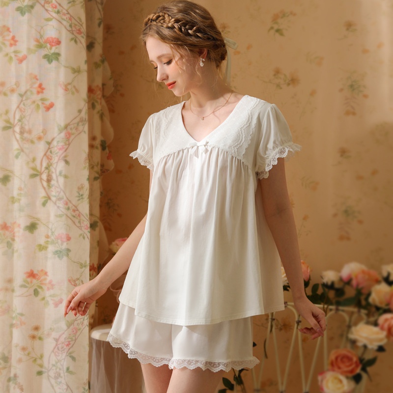 Cotton Pajamas Women Summer Thin Short-sleeved Shorts Cute Sweet French Court Princess Girl Home Clothes Two-piece Suit