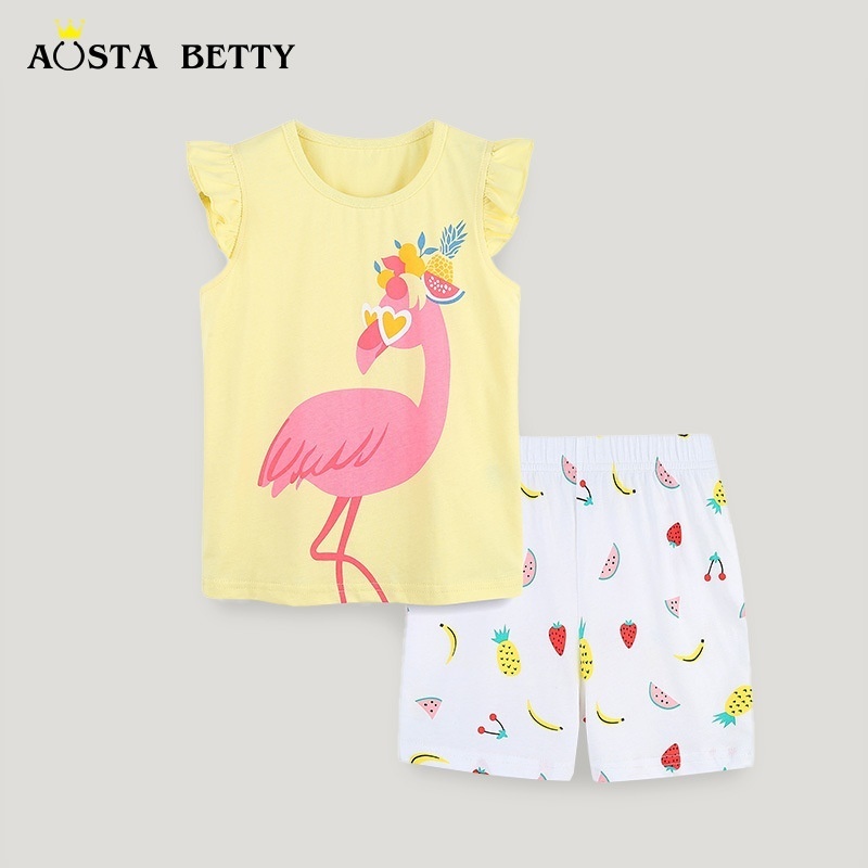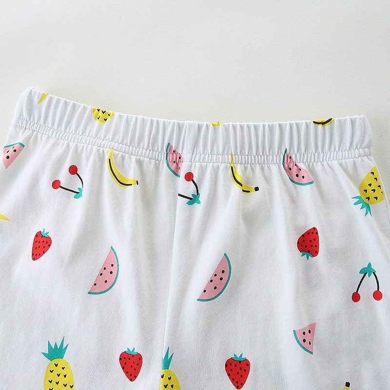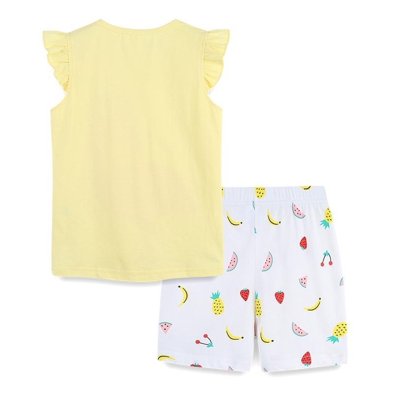 European And American Style Children's Short-sleeved Suit Summer Knitted Cotton Girls T-shirt Suit Cartoon Round Neck Two-piece Suit