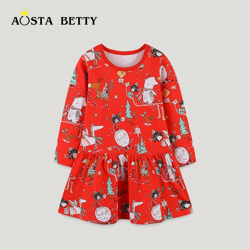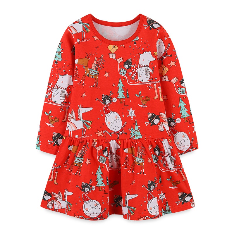 Autumn Arrival Girls Long-sleeved Dress European And American Style Cartoon Christmas Princess Dress Knitted Cotton Cute Children's Dress
